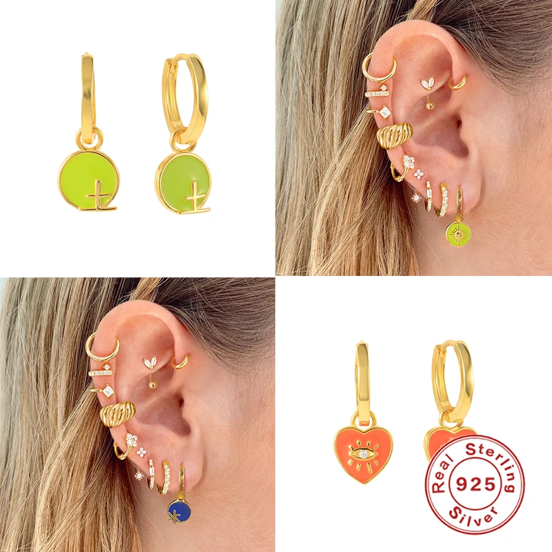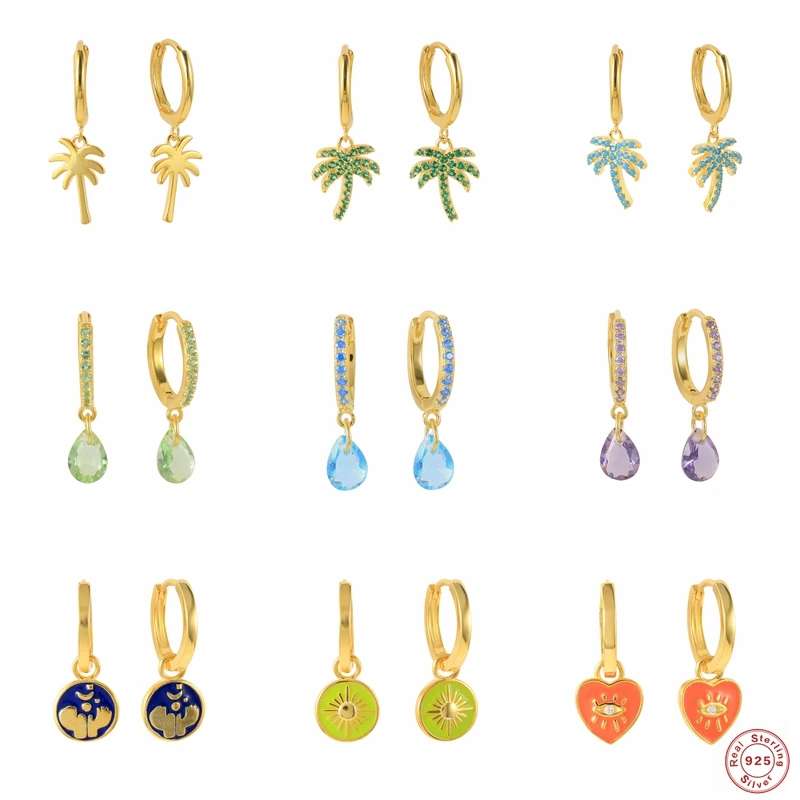 Женские серьги-кольца Pendientes plata из стерлингового серебра 925 пробы с цветными каплями кокосового дерева, свадебные серьги с кристаллами и эмалью, подарок
