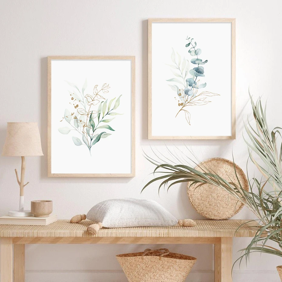 Богемные постеры с золотыми зелеными листьями акварелью в скандинавском стиле Картина на холсте настенные художественные принты картина для гостиной интерьер домашний декор