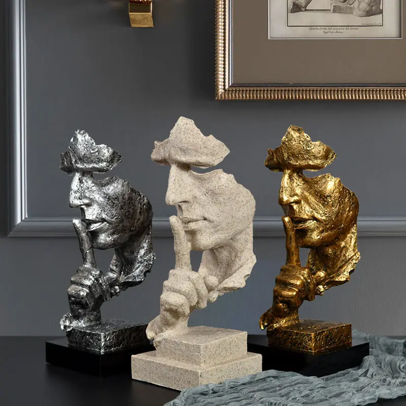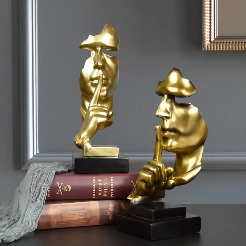 Фигурки из смолы в стиле ретро тишина-золото, оригинальные декорати...