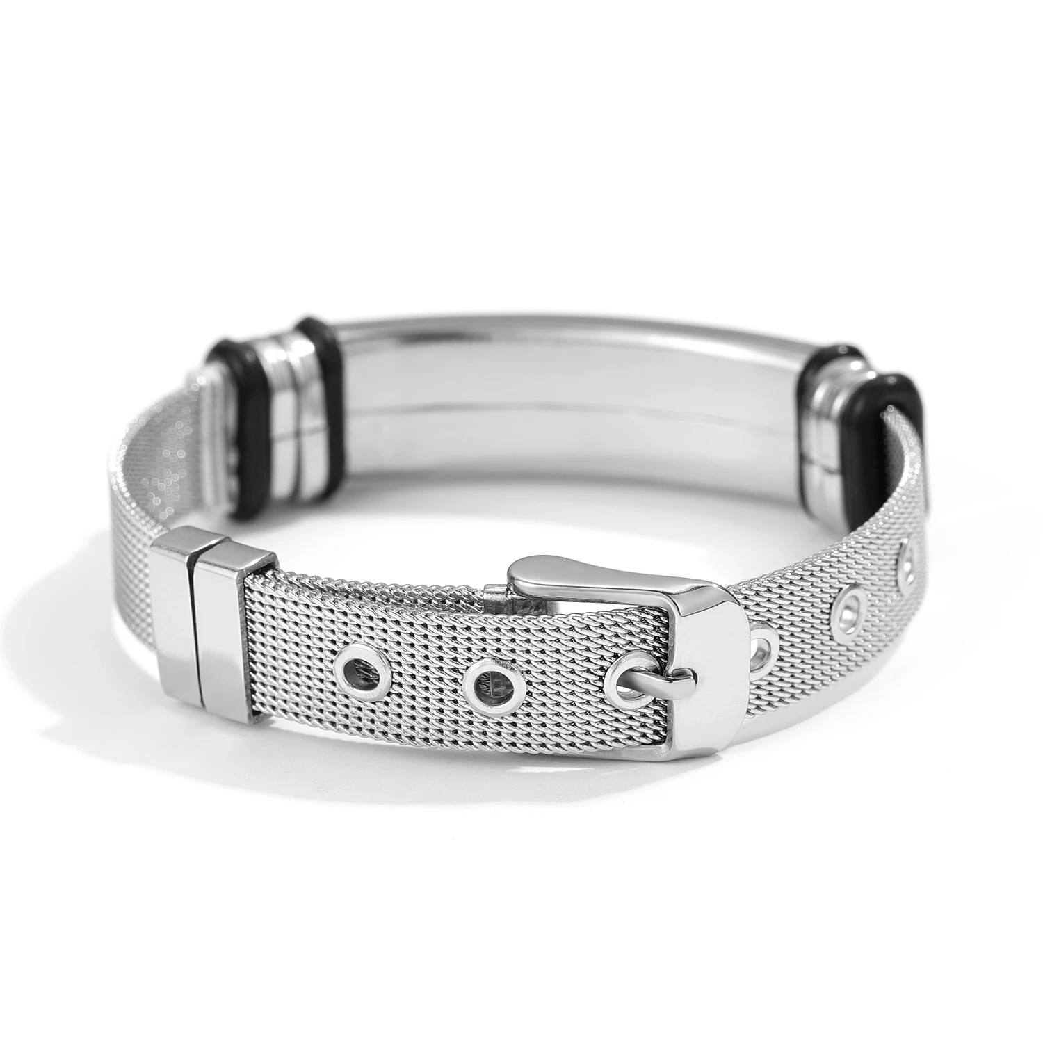Браслет мужской из нержавеющей стали, черный, с гравировкой, регулируемый, с сеткой
