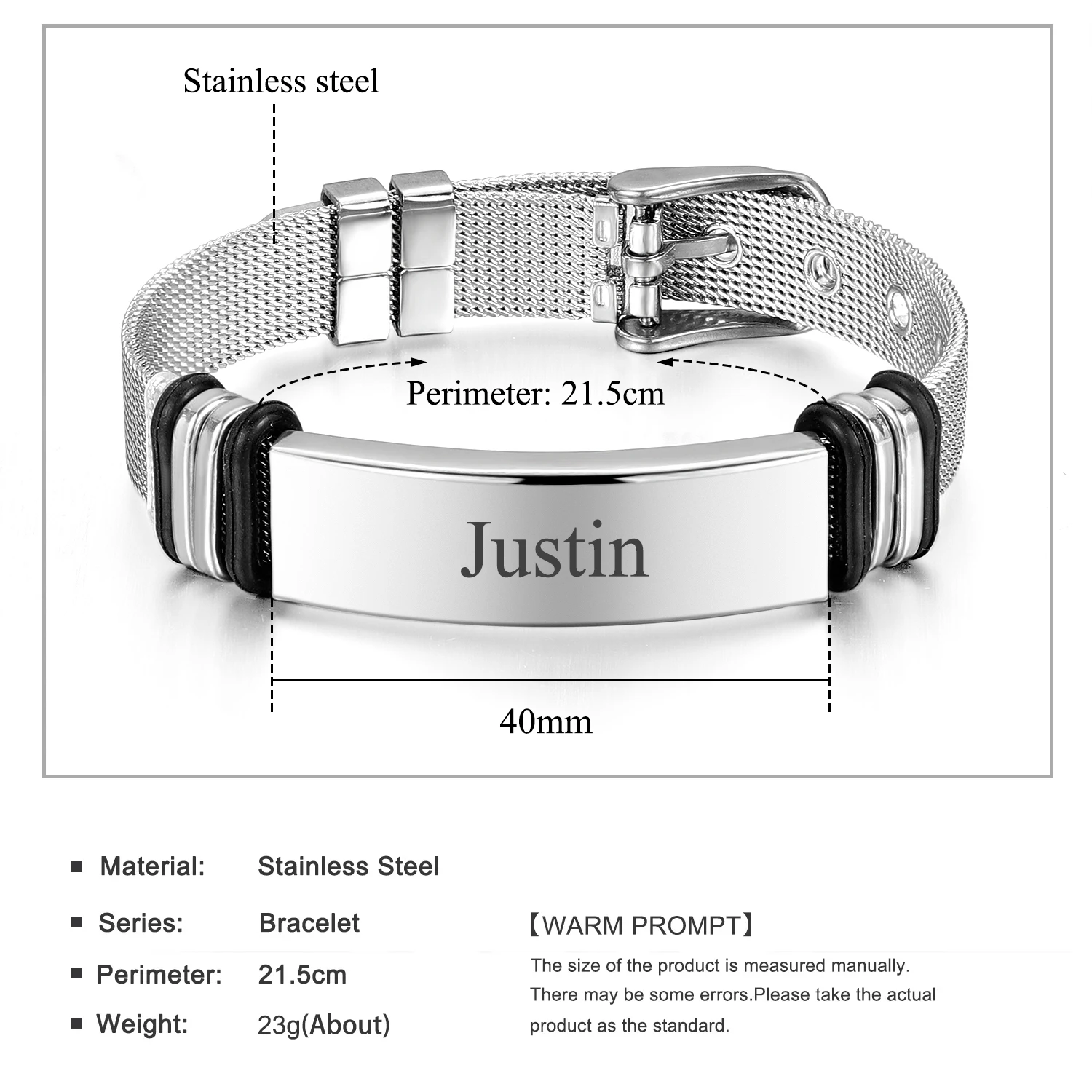 Мужской браслет с именемлазерной гравировкой, идентификацией даты, ...