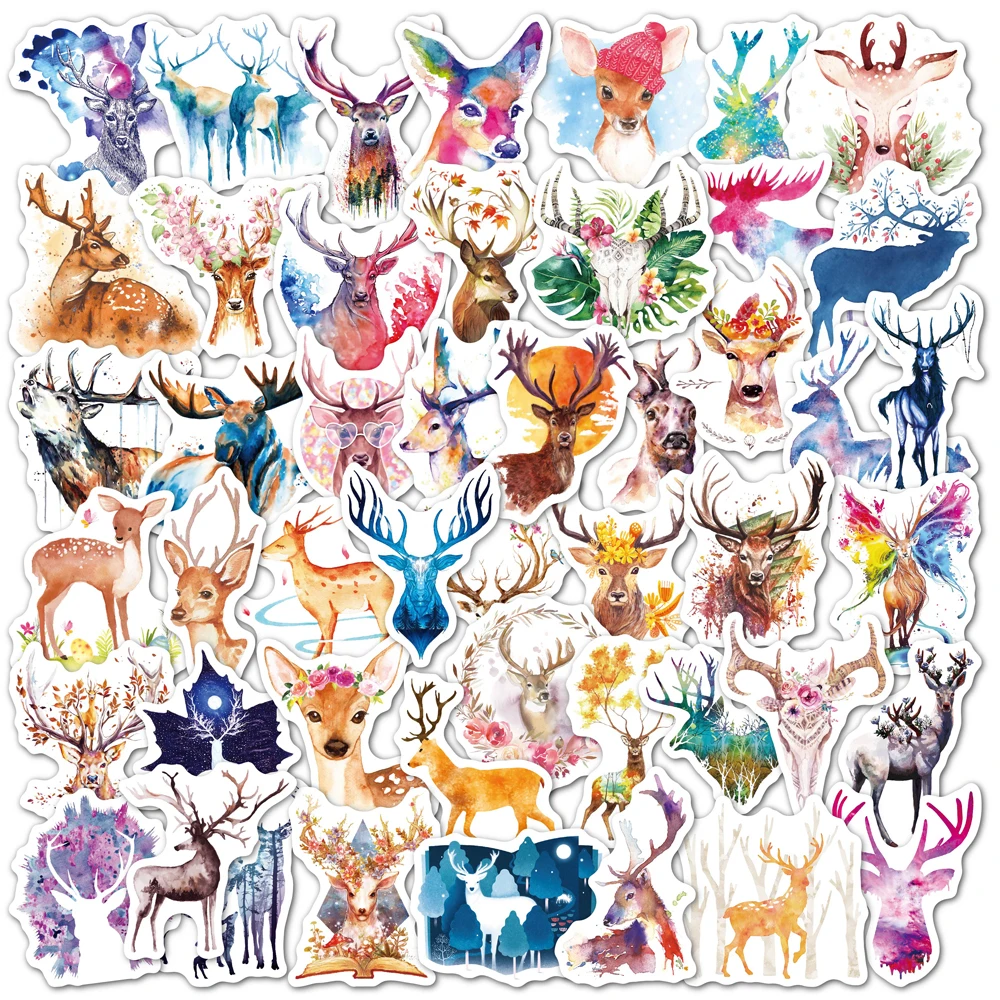103050 шт. микс стилей Милые акварельные животные Лось граффити стикеры s эстетичный ноутбук телефон гитара фотостикер детская игрушка