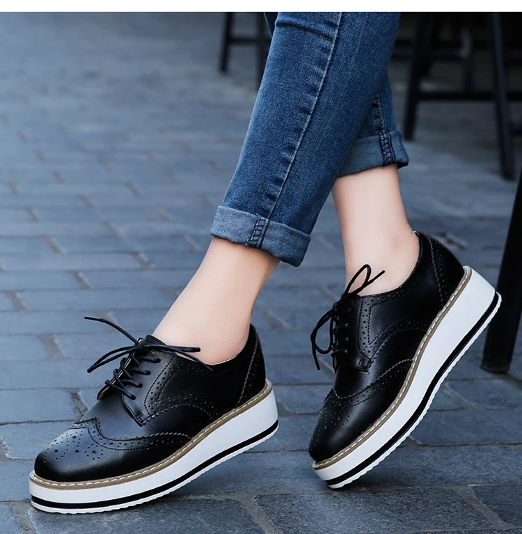 Туфли-оксфорды женские из лакированной кожи, Классическая винтажная обувь на платформе, плоская подошва, со шнуровкой, на танкетке, весна-осень