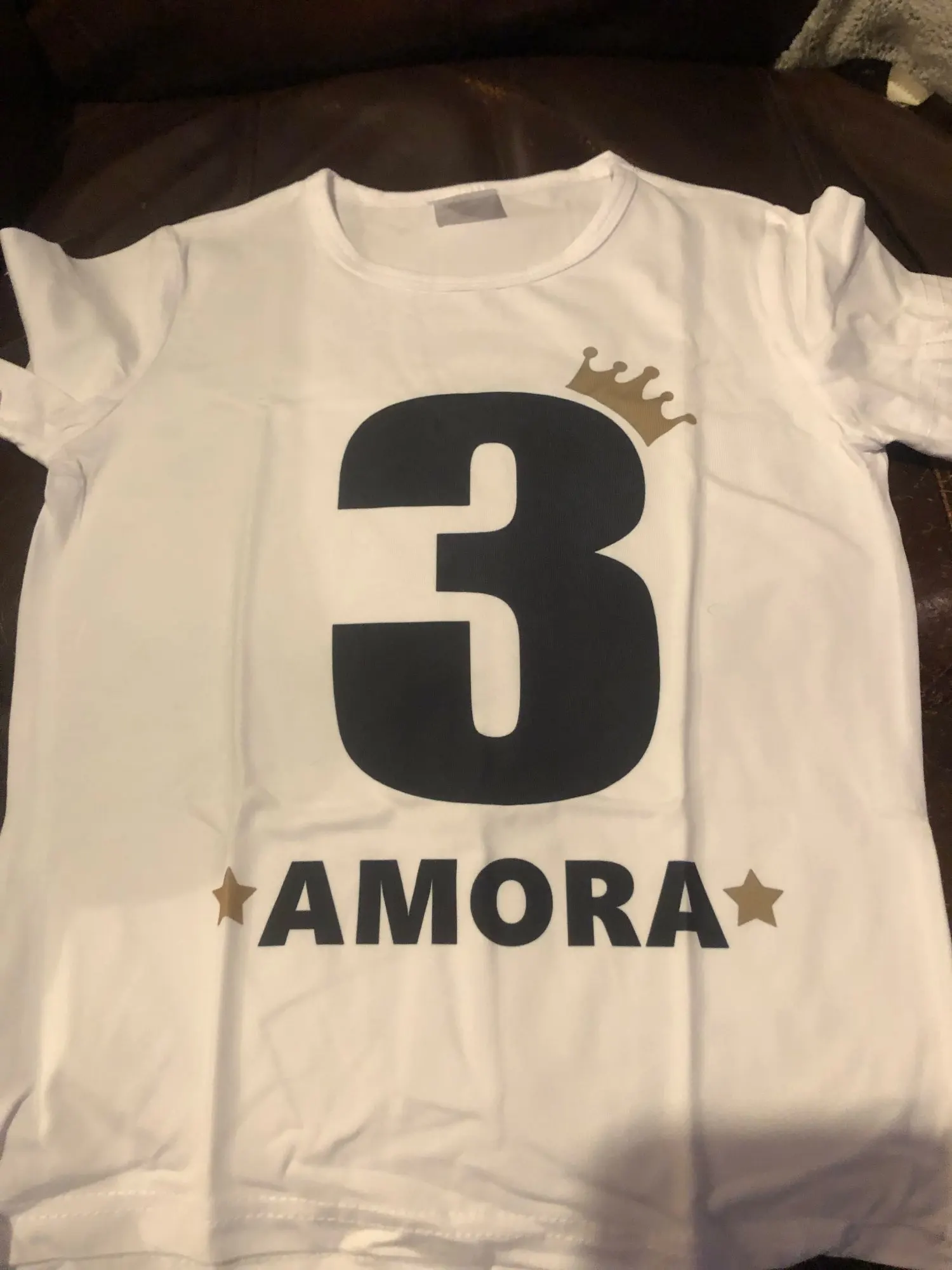 Восхитительная ткань. Красивая печать по имени. Размер 6 подходит для детей 5 лет. Предполагаемое время доставки было 18 июля, но я получил все это 30 июня. Очень быстрая доставка.