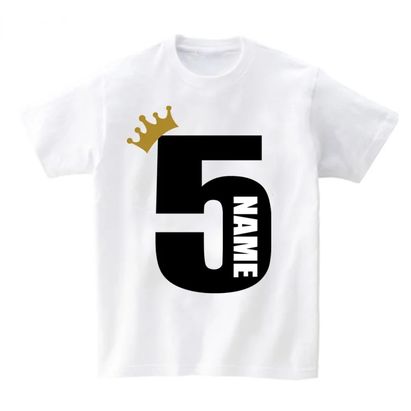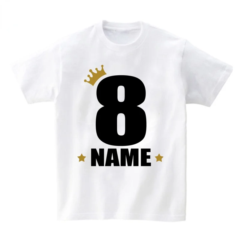 Детская футболка на заказ, футболки для мальчиков, одежда для девочек, персонализированная рубашка с именем короны на день рождения, детские футболки, детская одежда с номером
