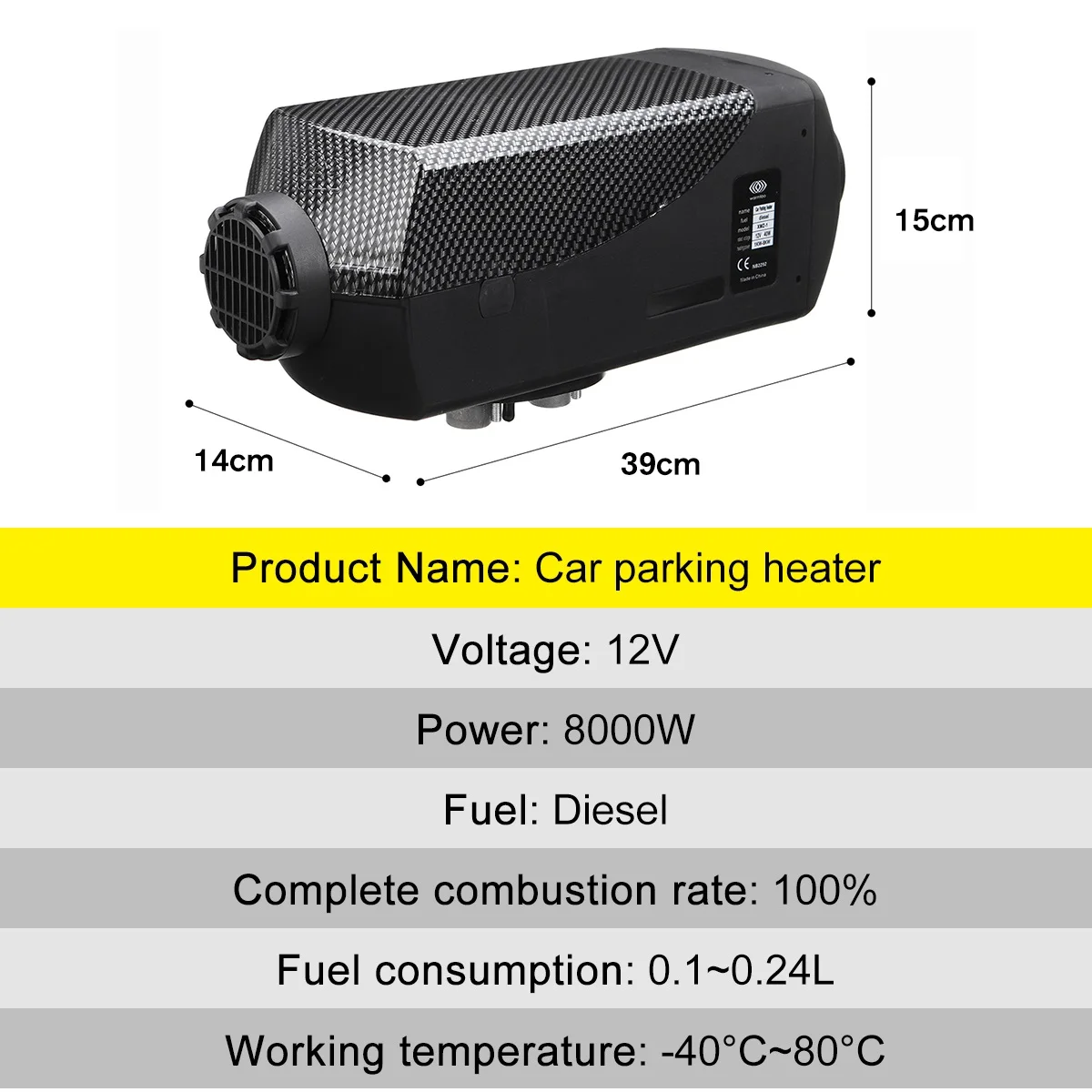 Дизельный Обогреватель воздуха KROAK, 5-8 кВт, 12 В, автомобильный обогреватель, парковочный обогреватель с большим переключателем, оснащенный пультом дистанционного управления для вилочного погрузчика, грузовика, автобуса