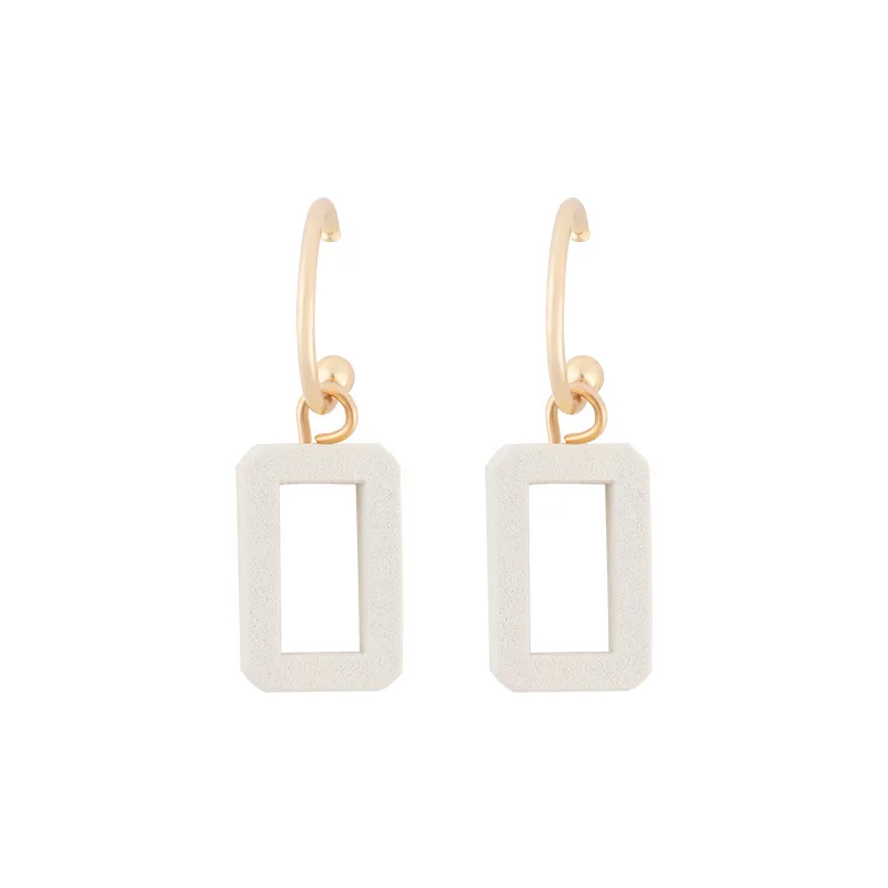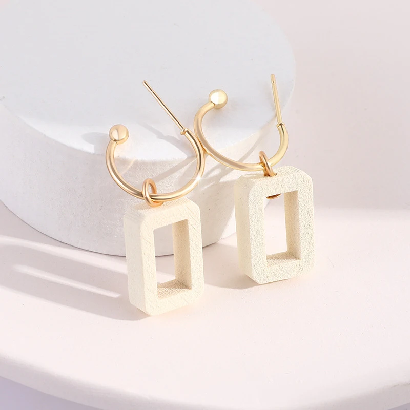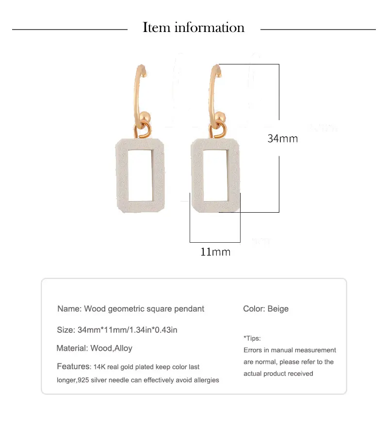 Женские прямоугольные серьги-подвески из натурального дерева бежевого цвета с геометрическим рисунком