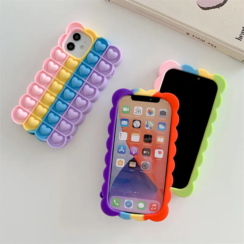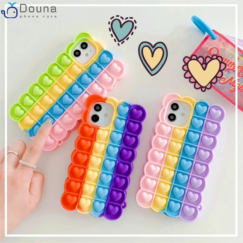 featurerelieve stress love heart pattern push bubble phone case