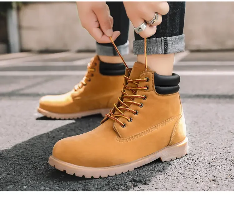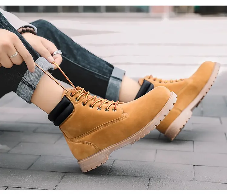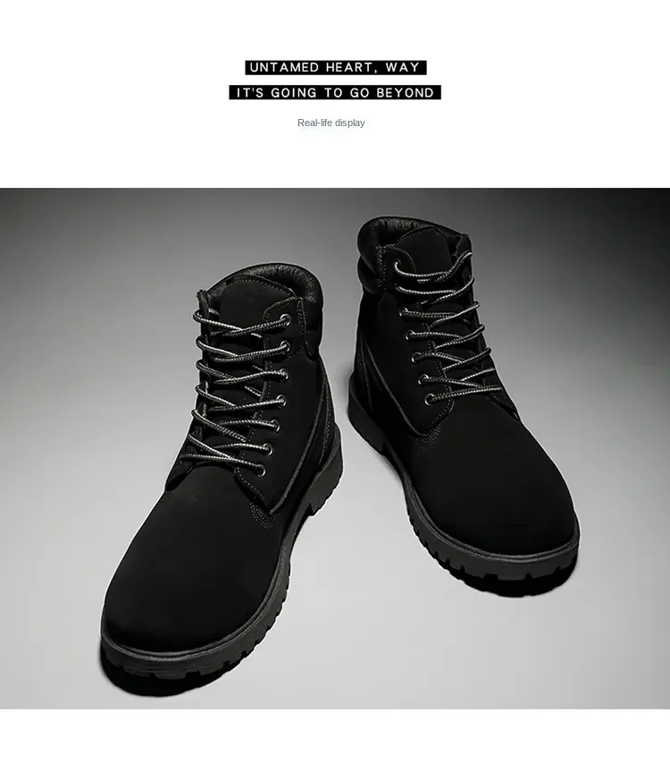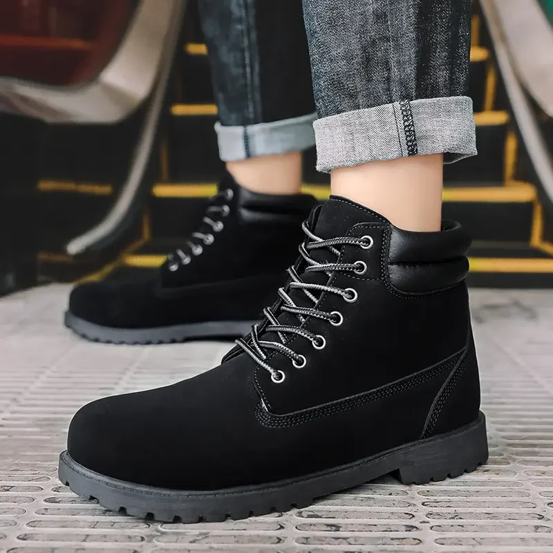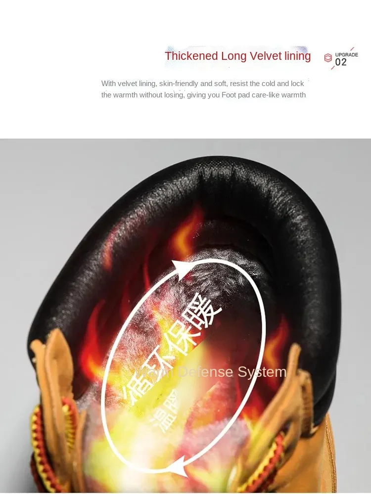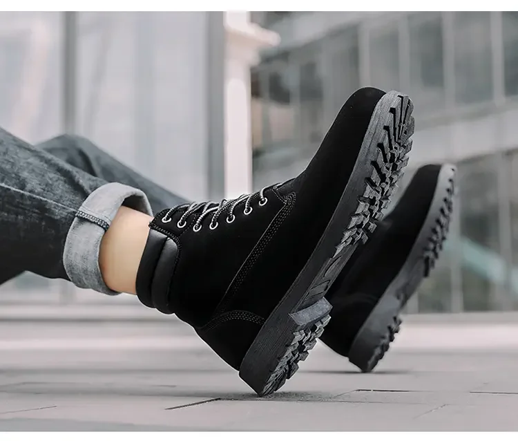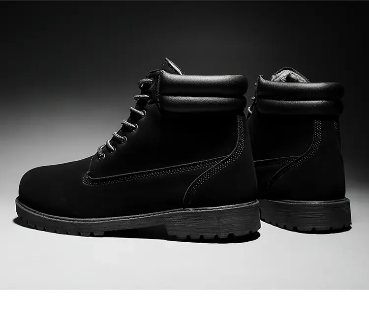 Классические однотонные ботинки со шнуровкой, с высоким верхом, из искусственной кожи и вельвета, Нескользящие, износостойкие, теплые, зимние