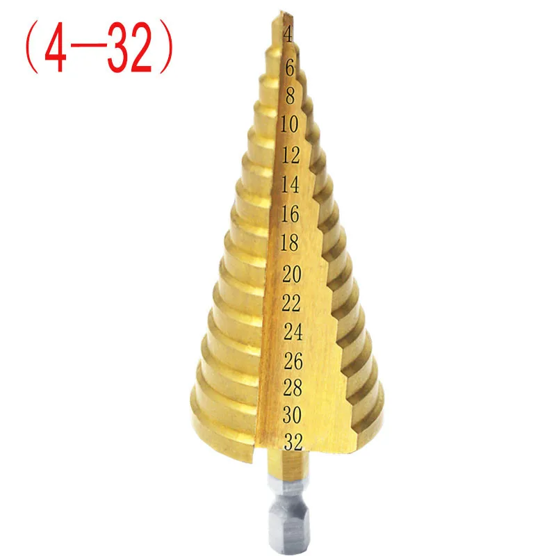 4-12 4-20 4-32 ступенчатое сверло из быстрорежущей стали с титановым покрытием сверлильные электроинструменты металлическое высокоскоростное стальное сверло для отверстий по дереву конусное сверло