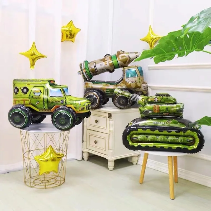 4d-комбинированный игрушечный экскаватор, земляной танкер, воздушные шары из фольги танк с ракетами, стерео сборка воздушный шар в форме автомобиля, товары для детского дня рождения