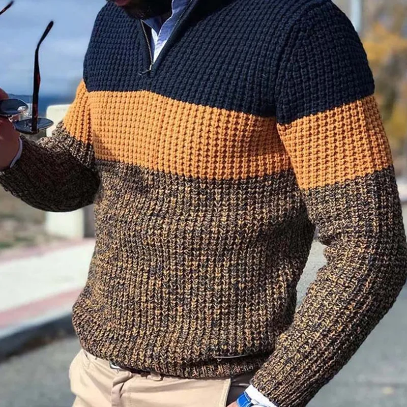 Мужской трикотажный пуловер с длинным рукавом и V-образным вырезом