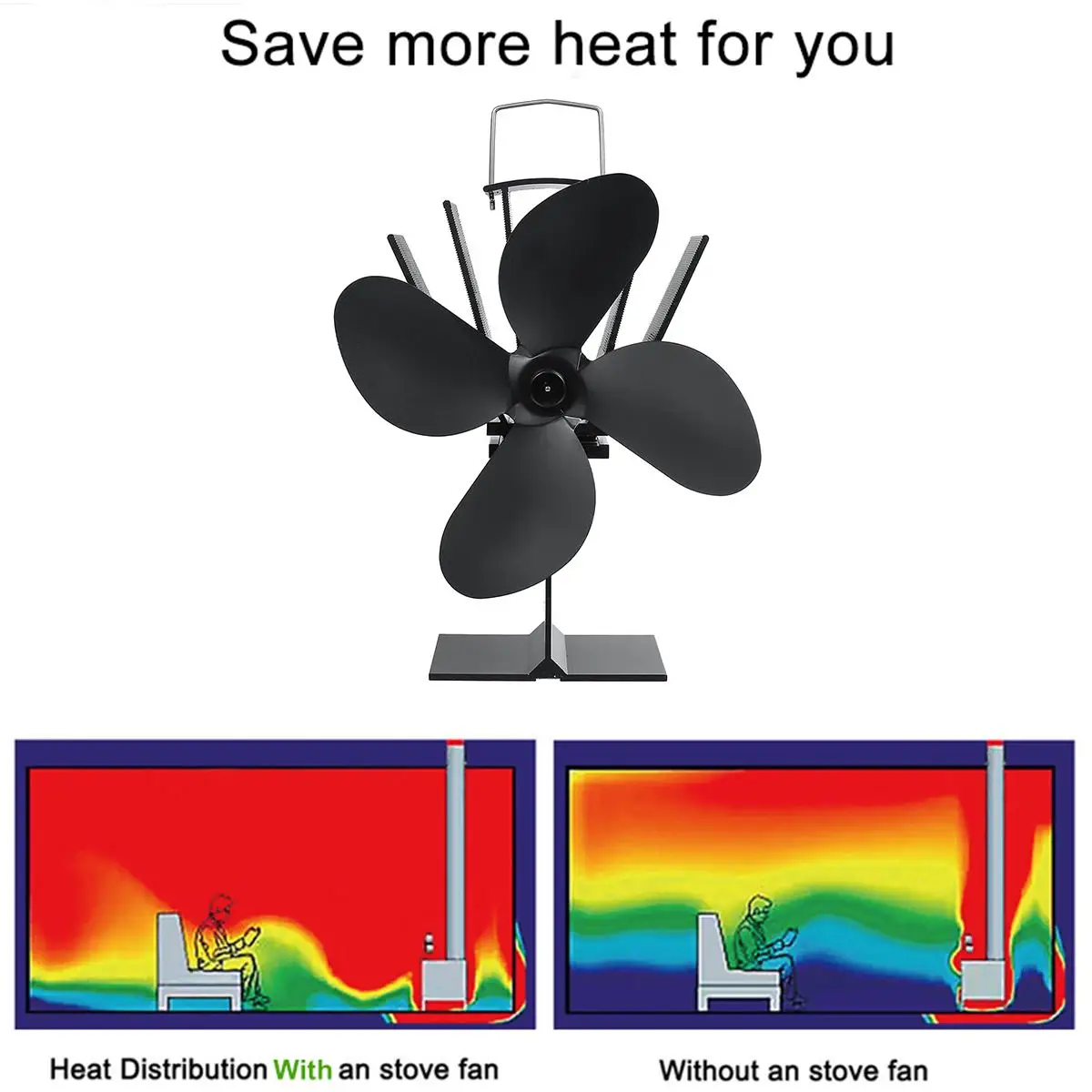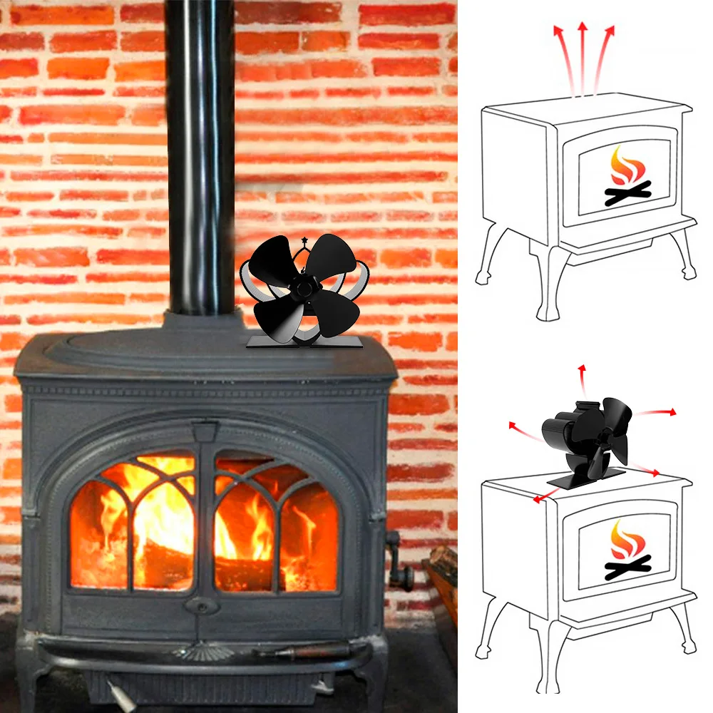 Черный камин, 4 лезвия, рабочая деревянная горелка, Тихая домашняя фотография, эффективное распределение тепла