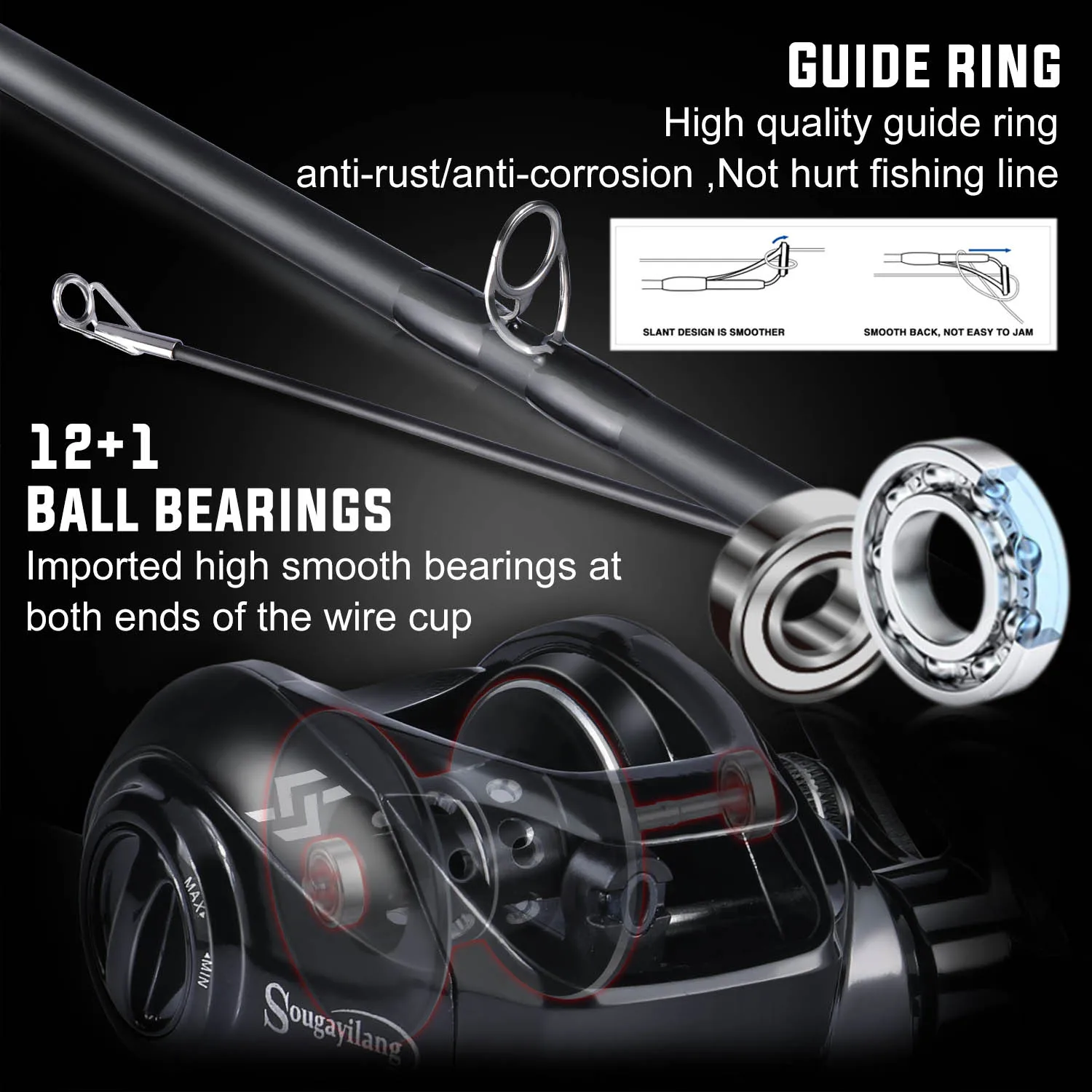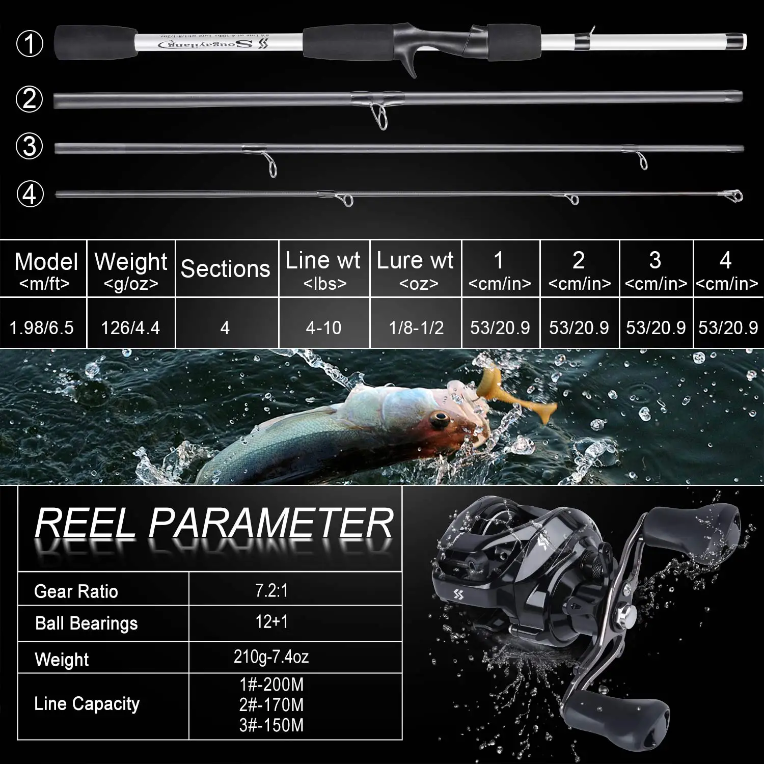 Катушка для спиннинга Sougayilang, 1,98 м, 4 секции, 12 + 1 шарикоподшипник