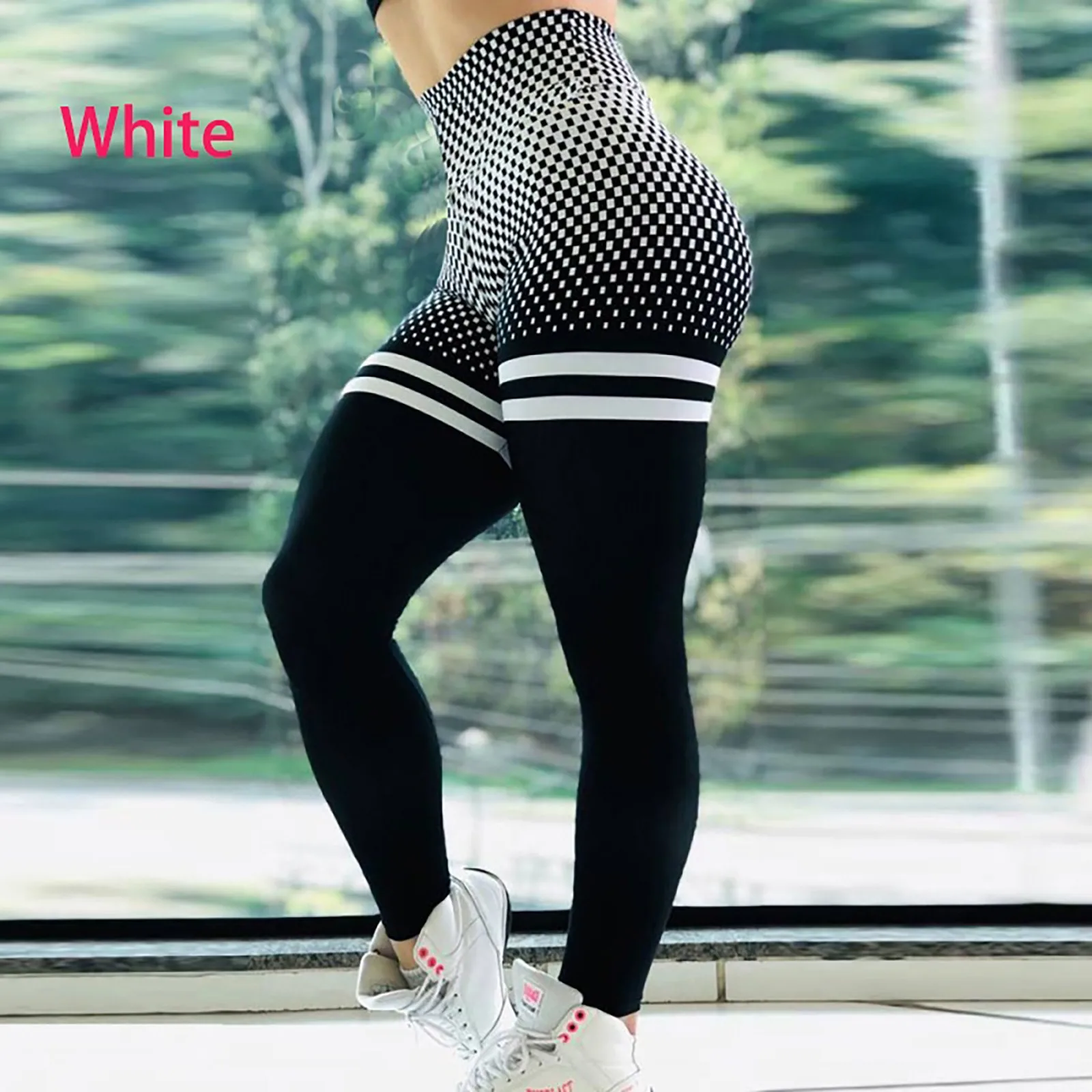 Клетчатый узор высокая талия дышащие для похудения спортивные штаны для йоги Беговые Спортивные
