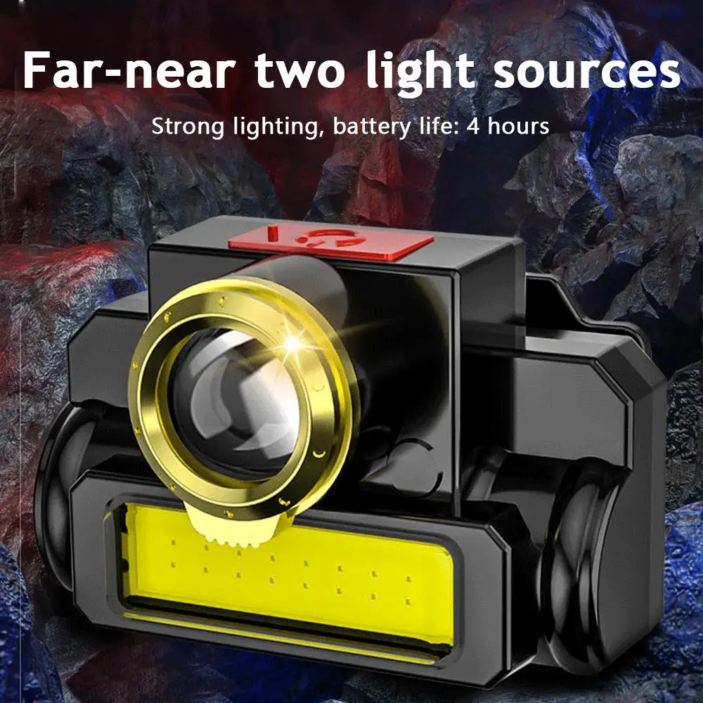 Светодиодный головной фонарь высокой мощности + COB, водонепроницаемый Головной фонарь, Головной фонарь со встроенным аккумулятором, Головной фонарь с USB-зарядкой, налобный фонарь