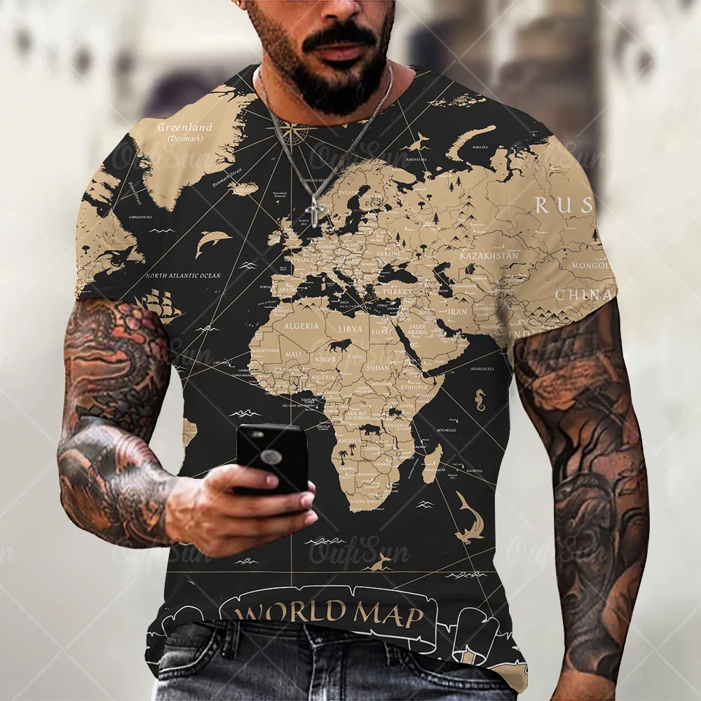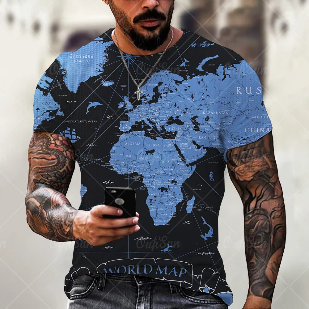 Мужская футболка с картой мира, Забавные футболки, летняя модная аниме футболка, 3D футболка, Мужская одежда, топы, футболки, 2021