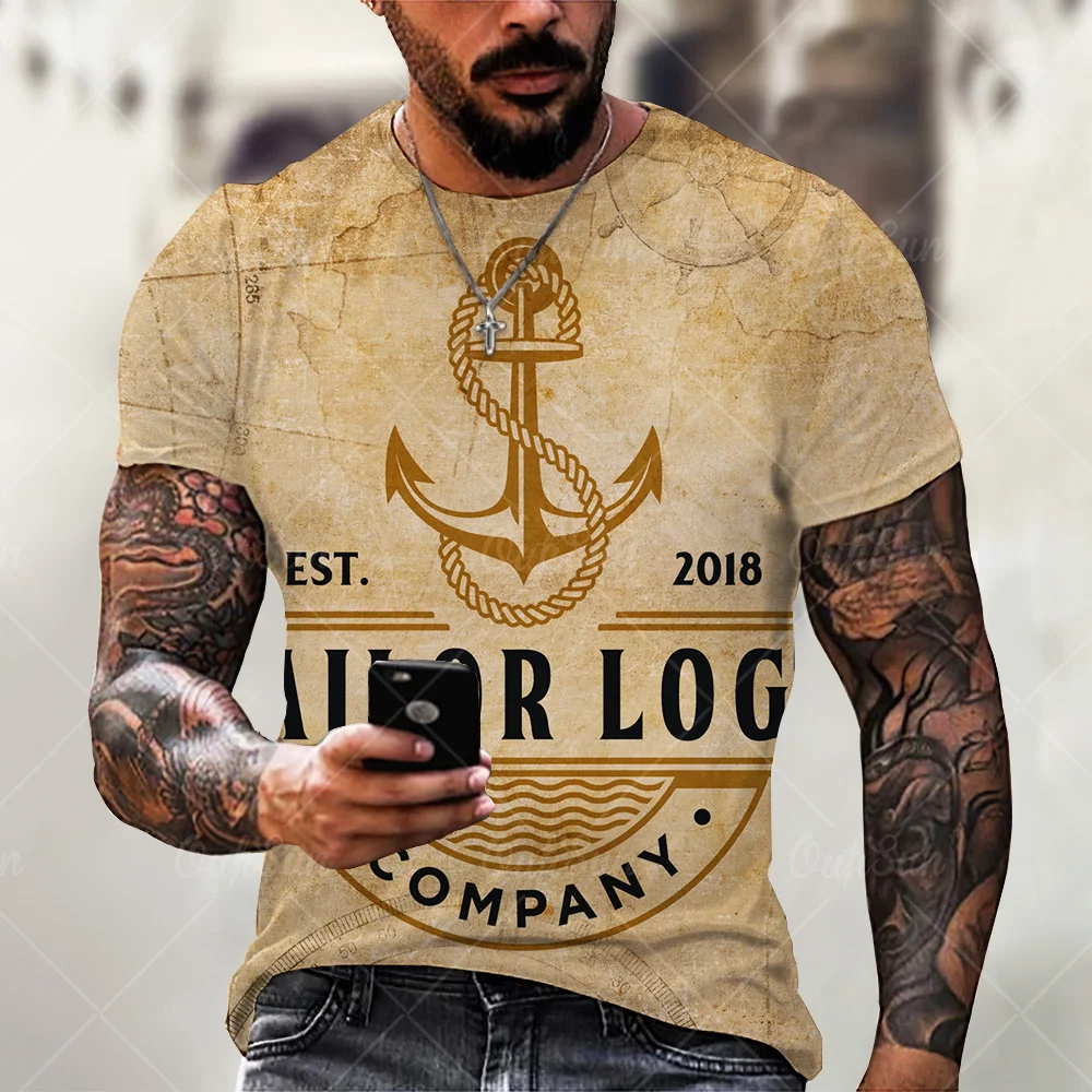 Футболка мужская с 3D принтом якоря, модная свободная тенниска с ко...