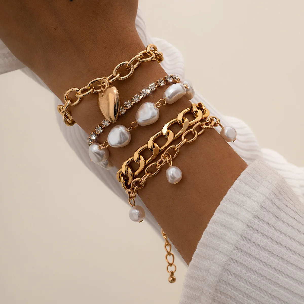 Комплект женских браслетов из кубинской цепи в стиле панк, 5 шт.