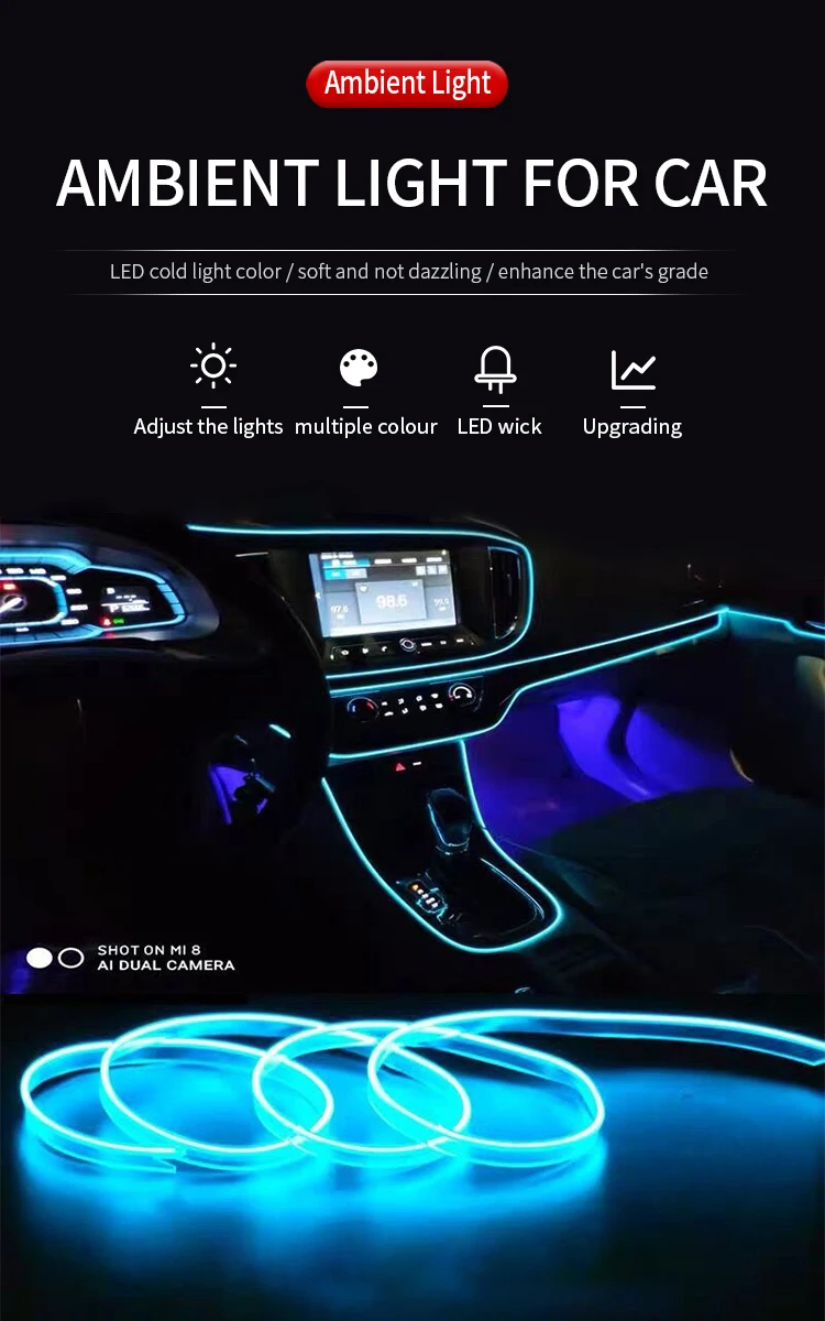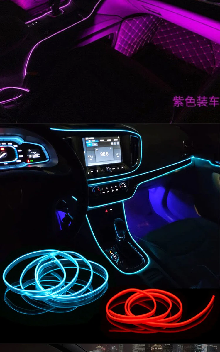 1 м3 м5 м8 м Автомобильный интерьер светодиодная декоративная лампа EL проводка неоновая полоса для Авто DIY светильник окружающий свет USB вечевечерние атмосфера диод