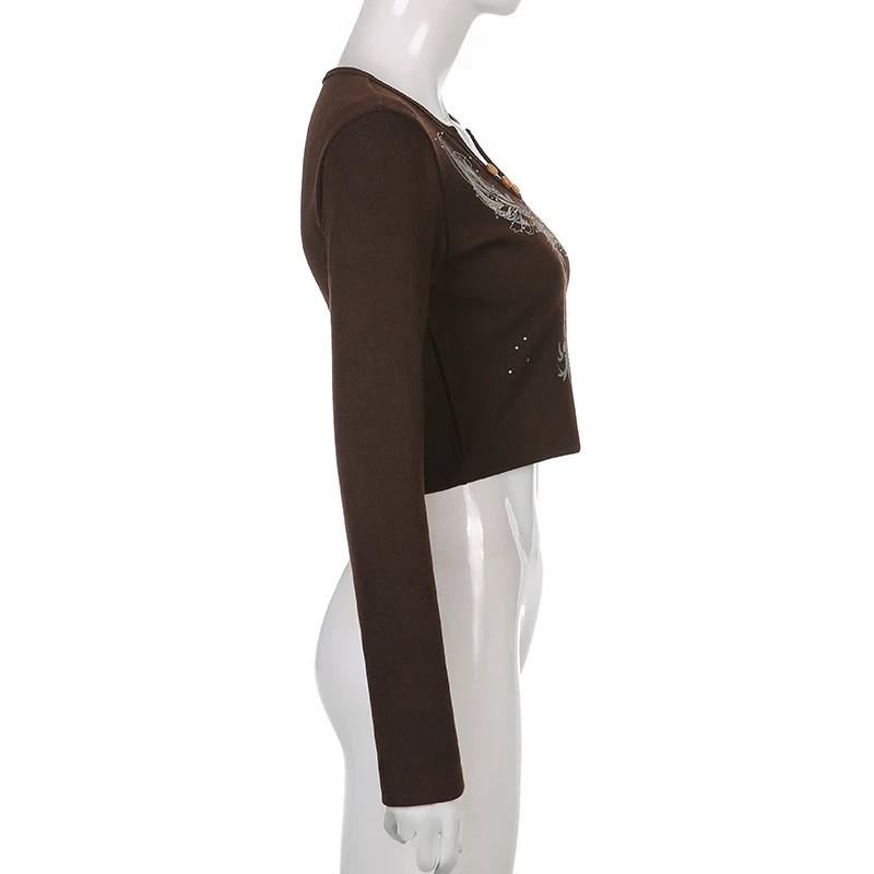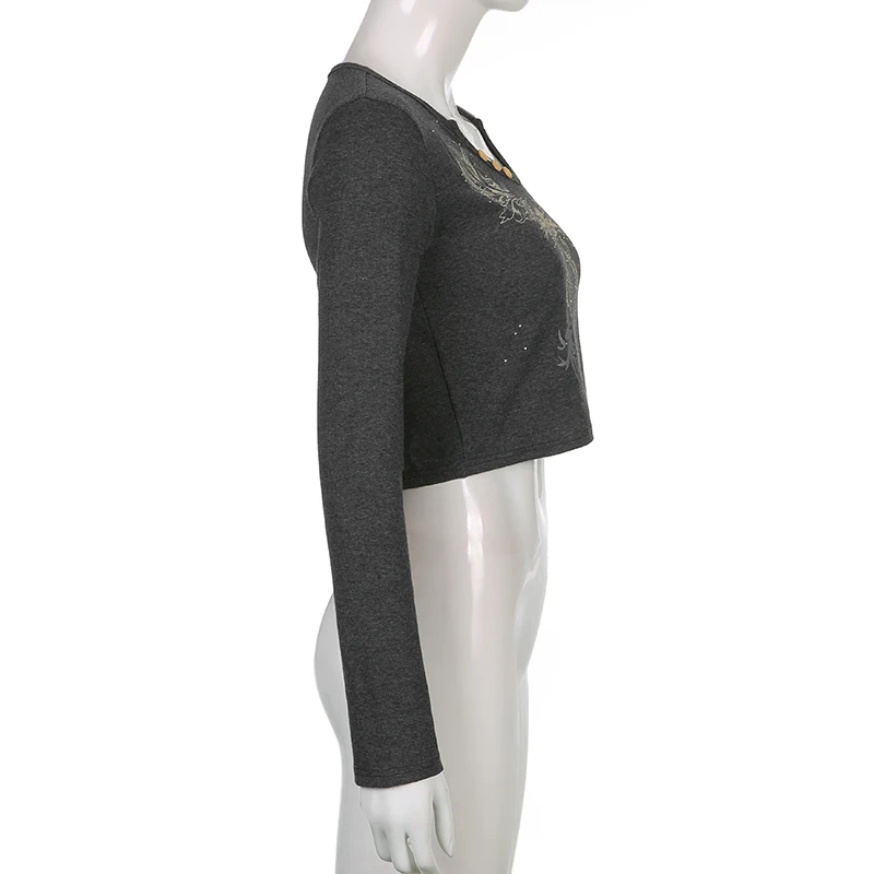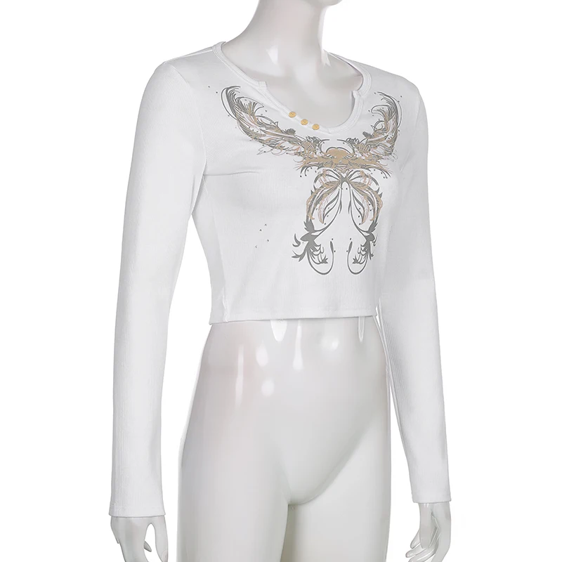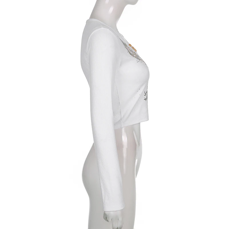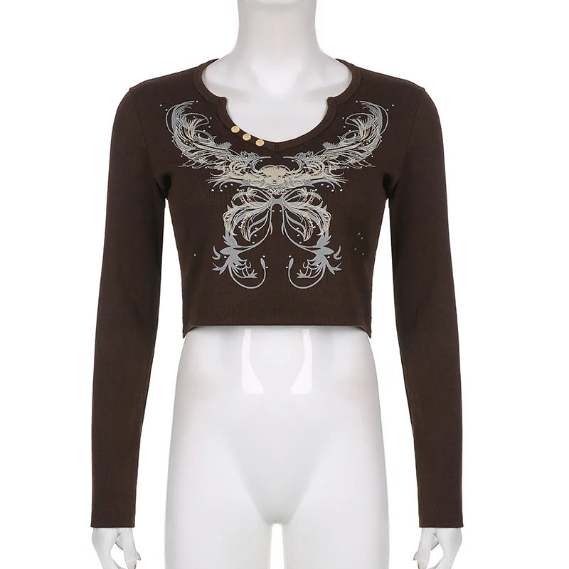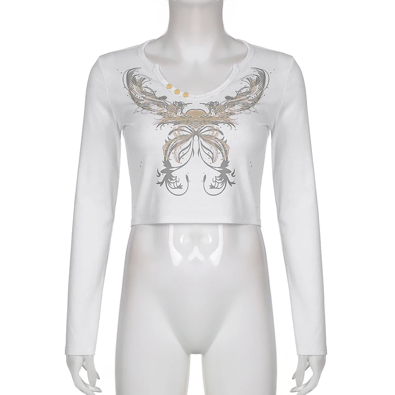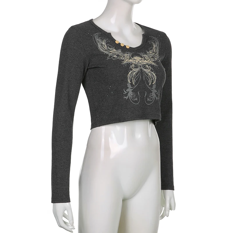 Darlingaga, Винтажная Футболка с принтом стразы, Женская гранж, Fairycore Y2K, короткий топ, темная академия, Женская эстетика