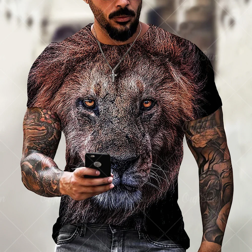 Футболка мужская оверсайз с 3D-принтом льва, модная уличная одежда ...