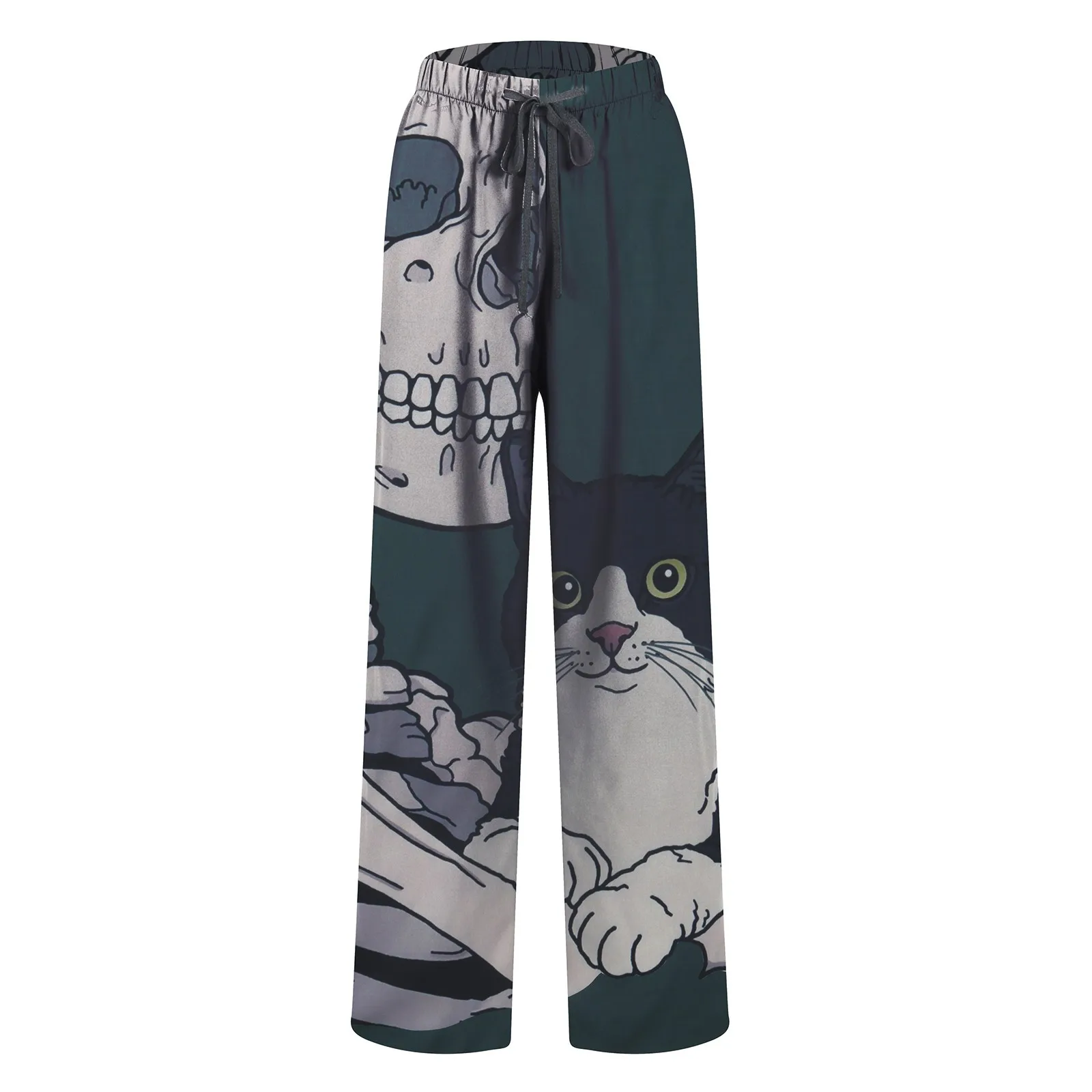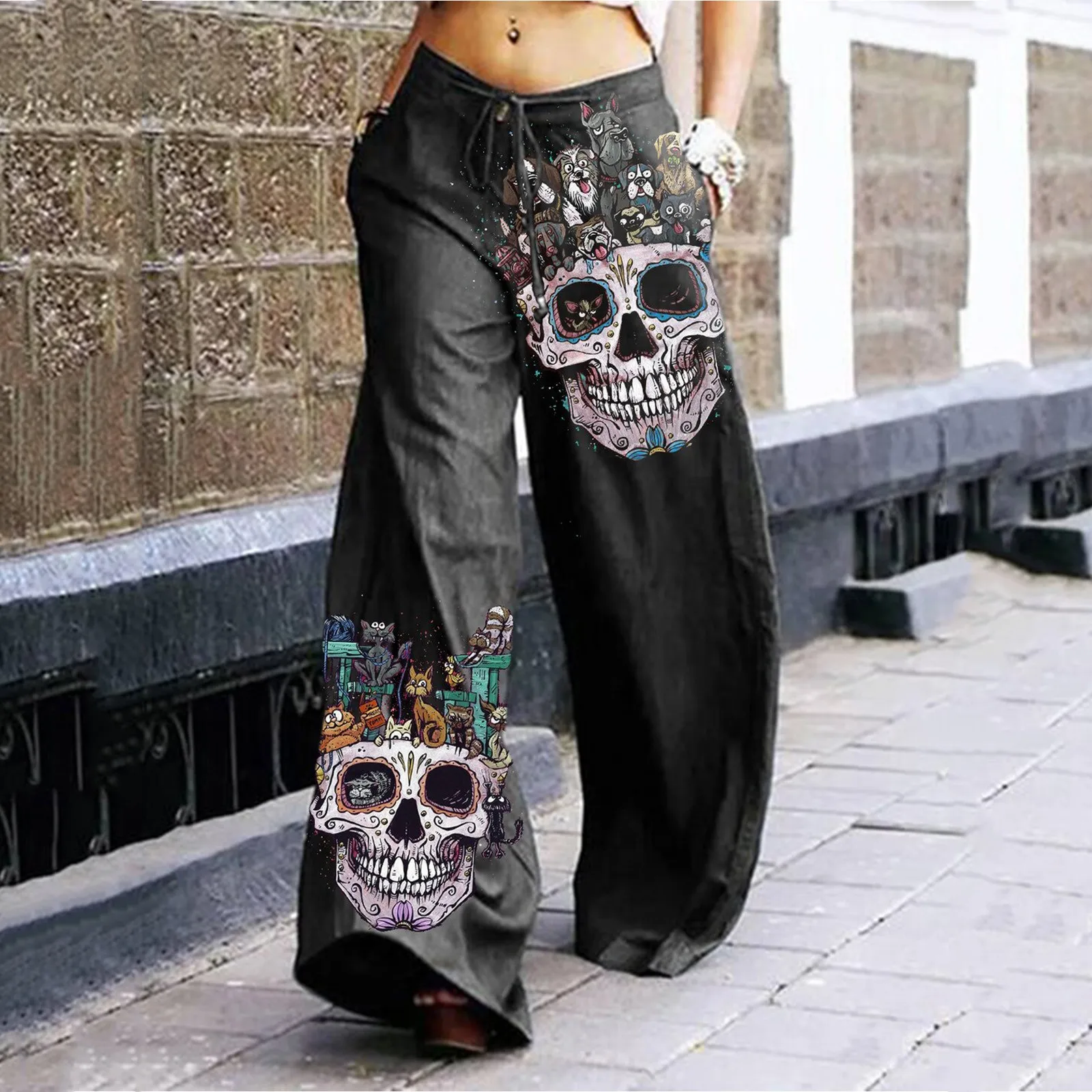 Женские брюки в стиле Хэллоуин с принтом черепа