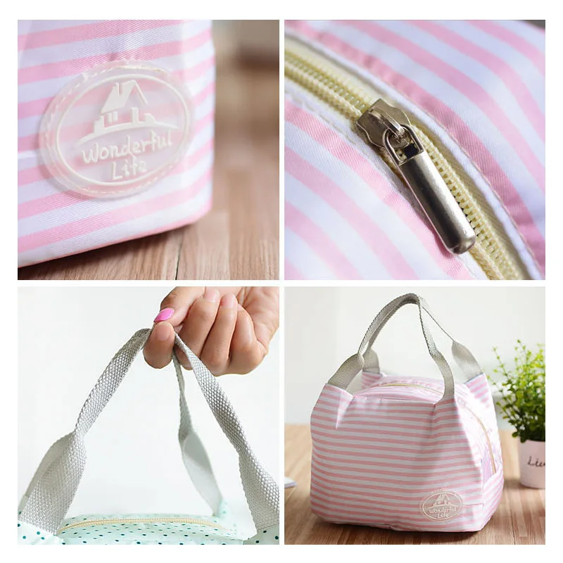 Модная простая Портативная сумка для ланча в горошек с термоизоляцией, безопасная для холодной еды, Теплые сумки для ланча в полоску для девочек и женщин