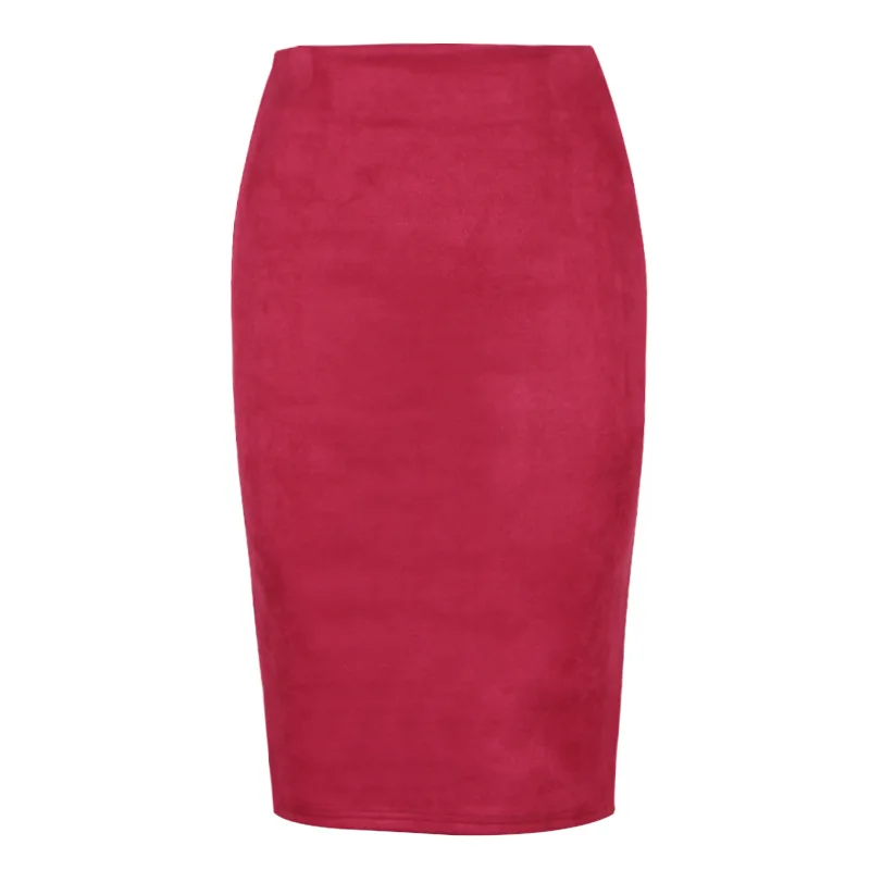 Женская замшевая юбка-карандаш средней длины, с высокой талией