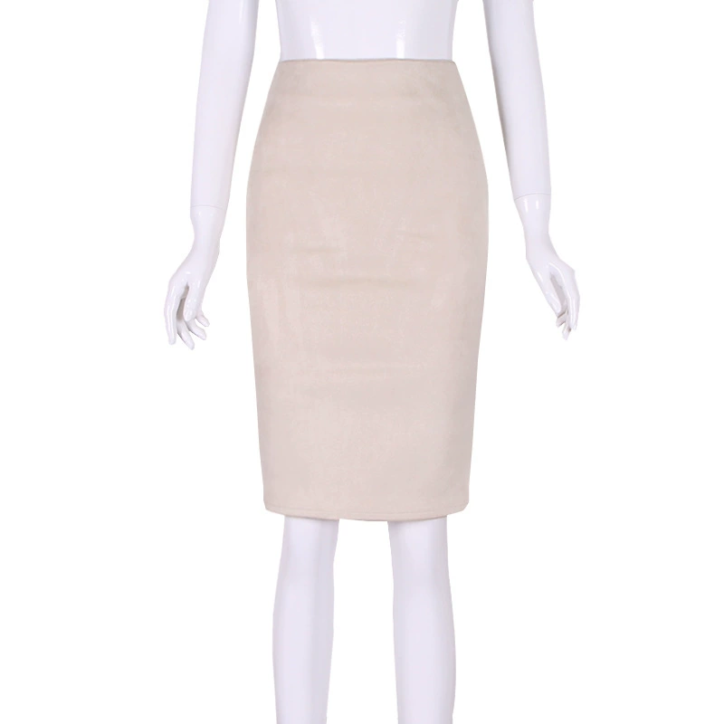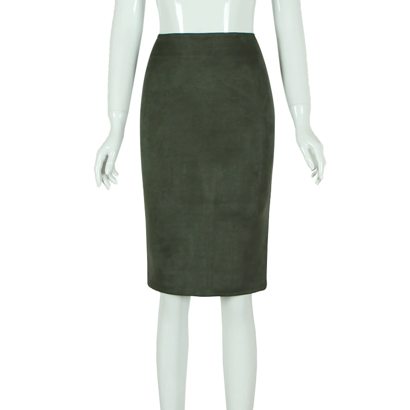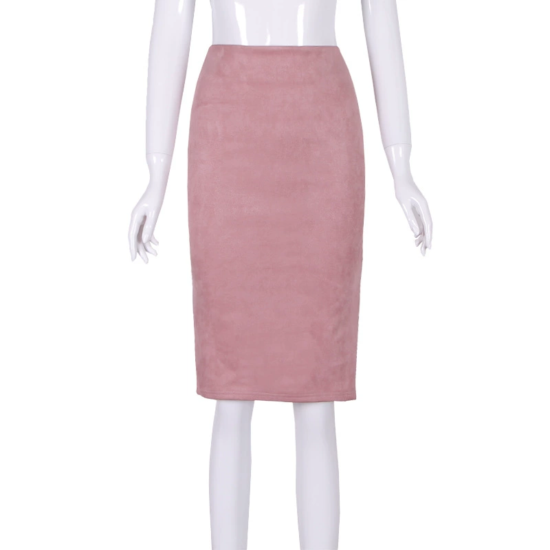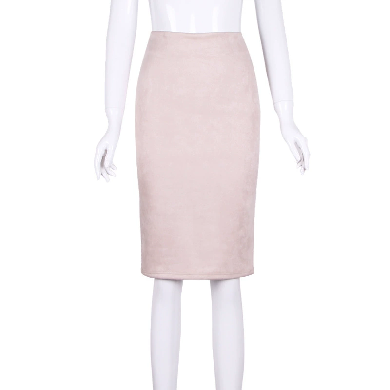 Осенняя Женская Повседневная замшевая облегающая юбка до колен, зимняя женская Однотонная юбка средней длины с высокой талией и разрезом в стиле Харадзюку DS318