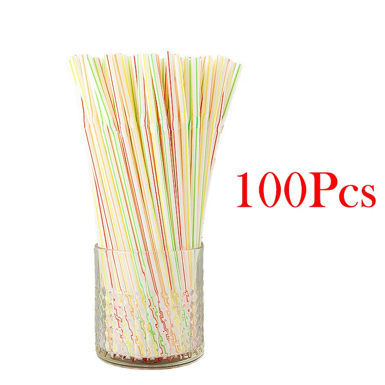 100 шт., пластиковые длинные гибкие трубочки для напитков