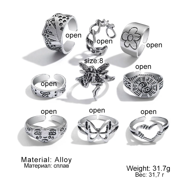 Набор Колец IFME для мужчин и женщин, винтажные серебряные перстни в форме сердца, цепи, бабочки, цветов в стиле панк, модные ювелирные украшения кольца кольцо женское кольцо мужское кольца 2021 тренд
