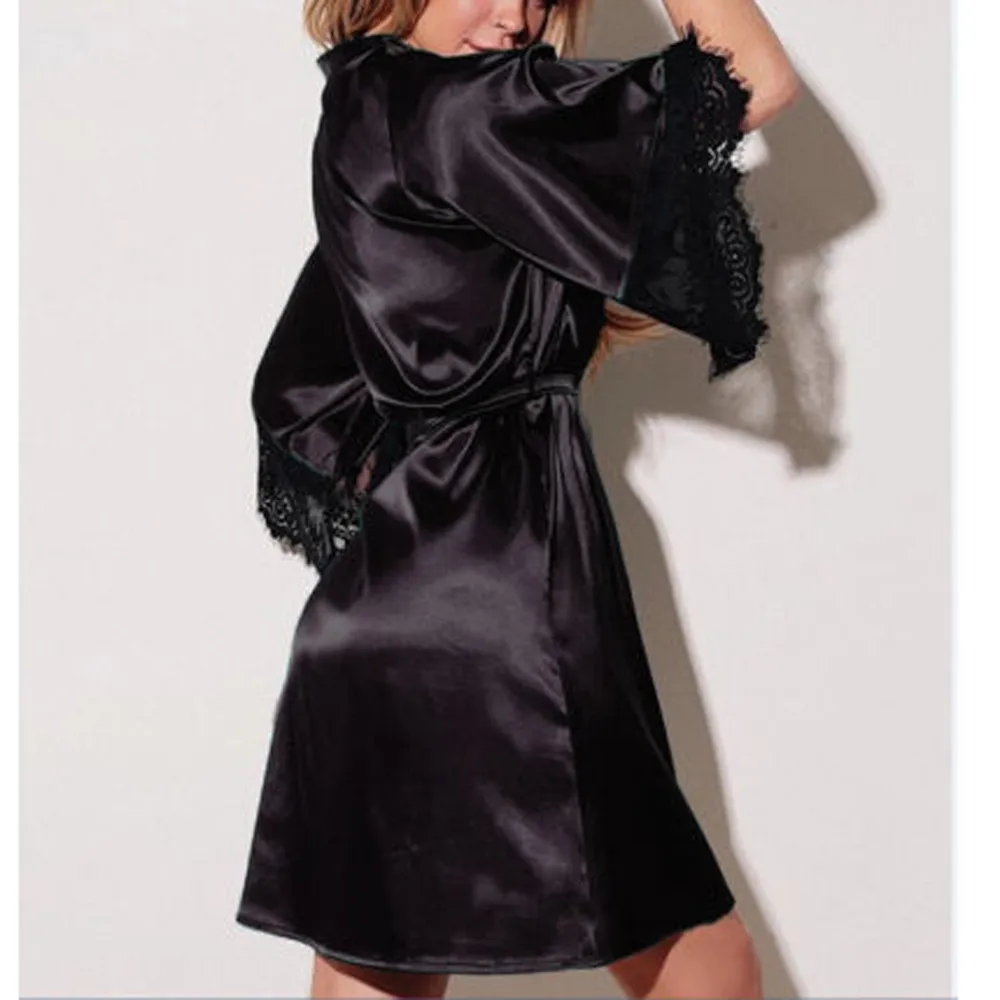 Женское пикантное длинное кимоно, кружевной банный халат, нижнее белье, ночная рубашка из вискозы, Однотонная ночная рубашка, ночная сорочка, ночная рубашка, Халат