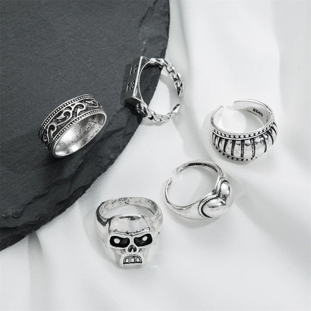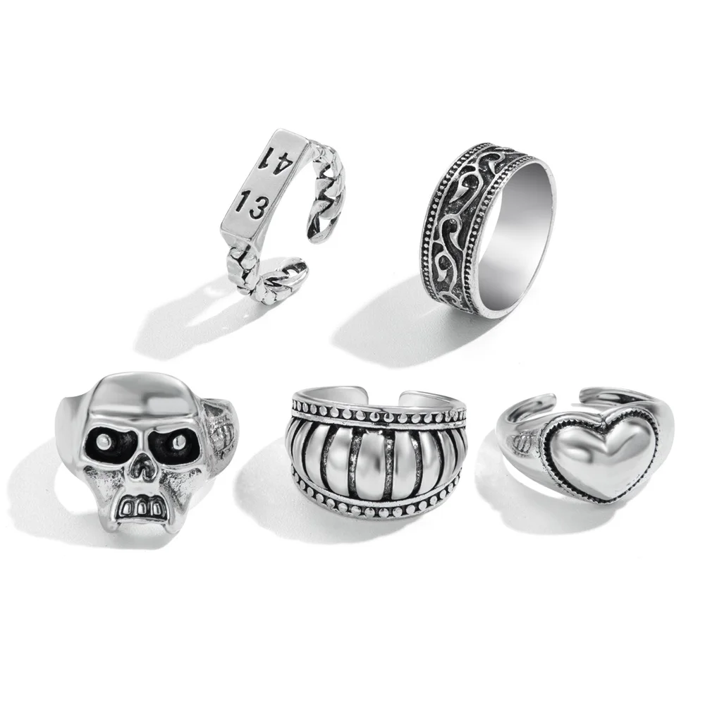 KISSWIFE Винтажные серебряные кольца с черепом и сердцем, набор для...