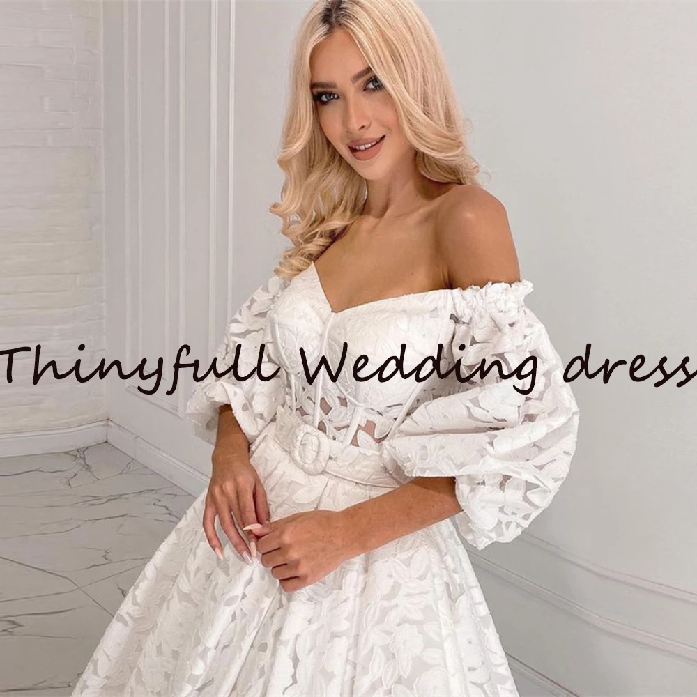 Thinyfulll модные блестящие свадебные платья а-силуэта с длинным ру...