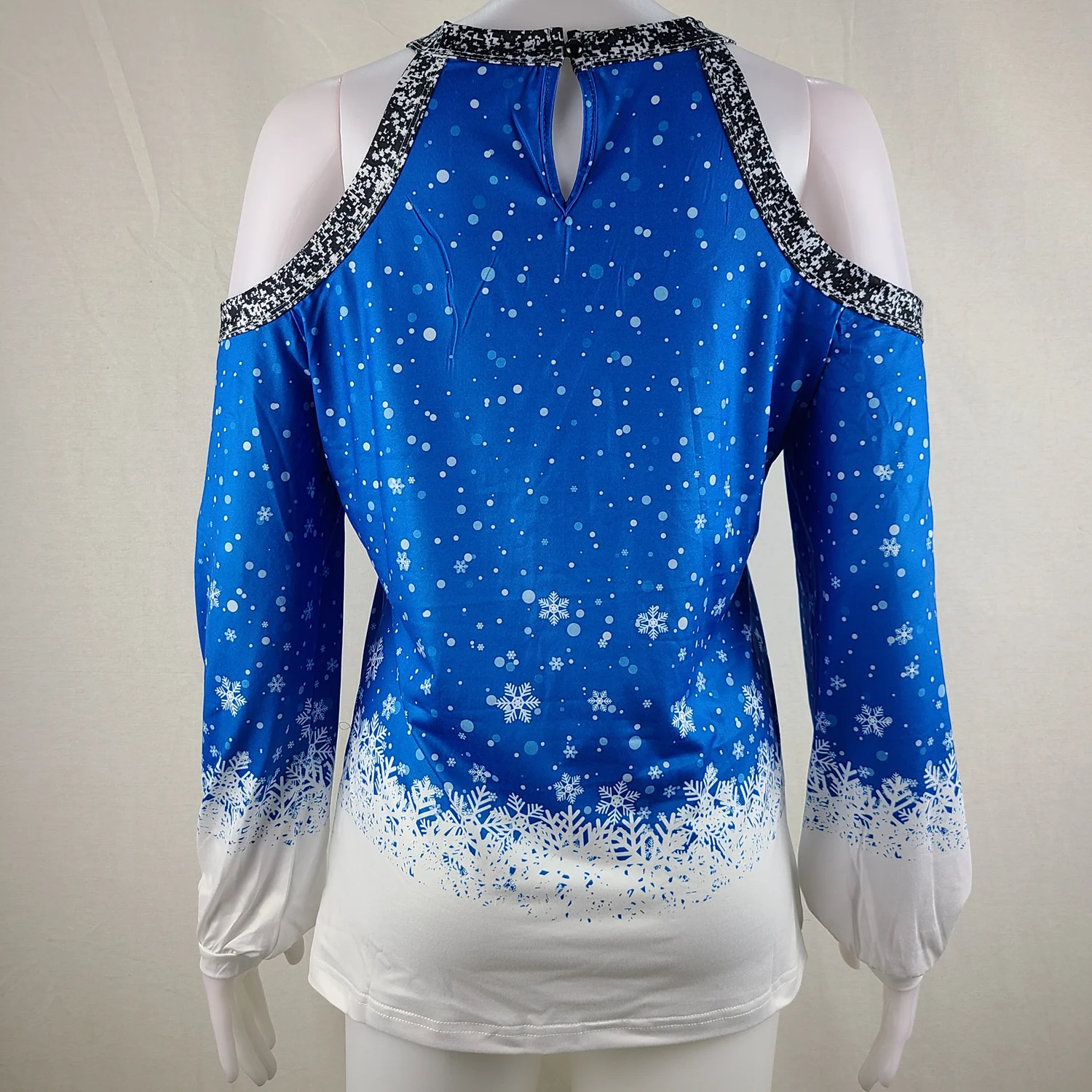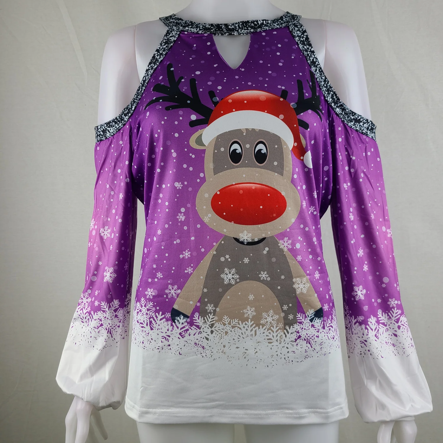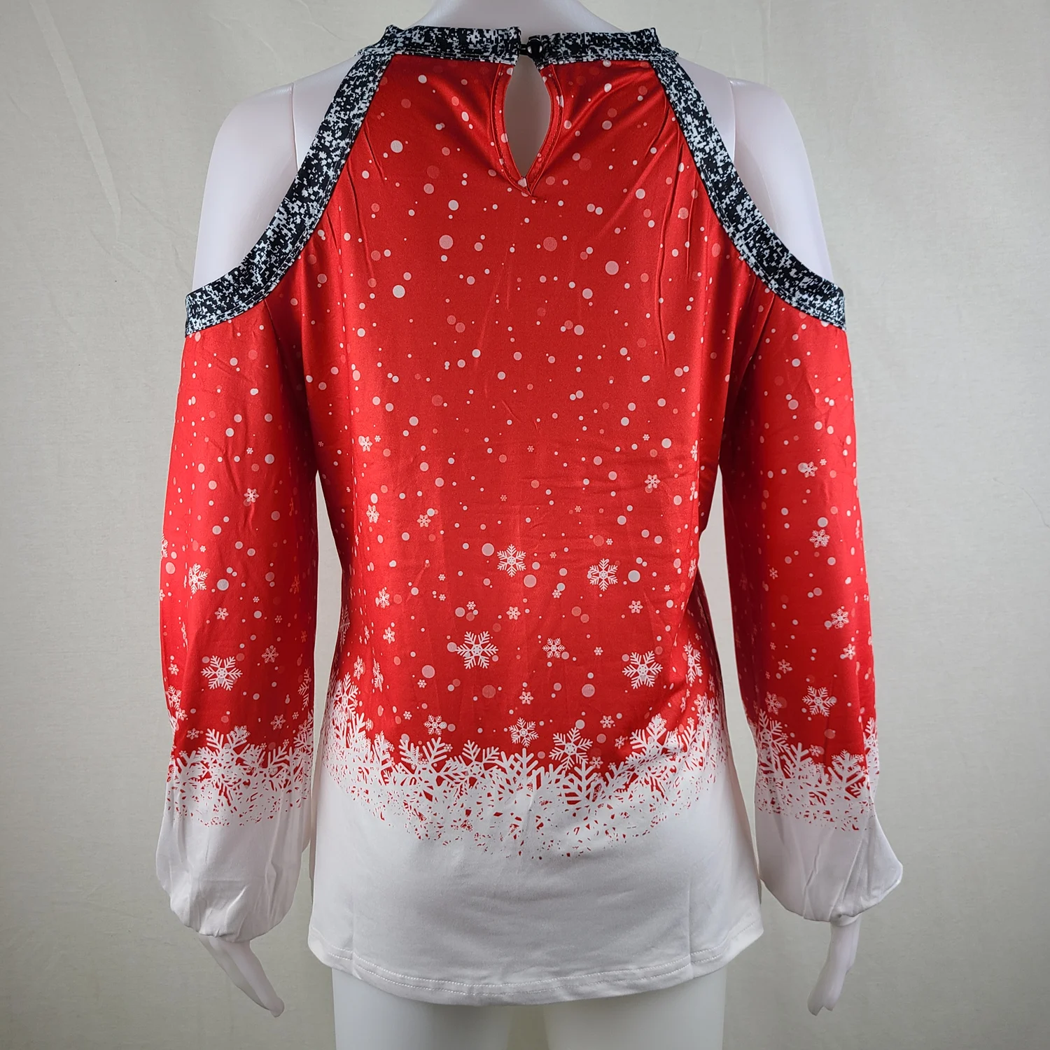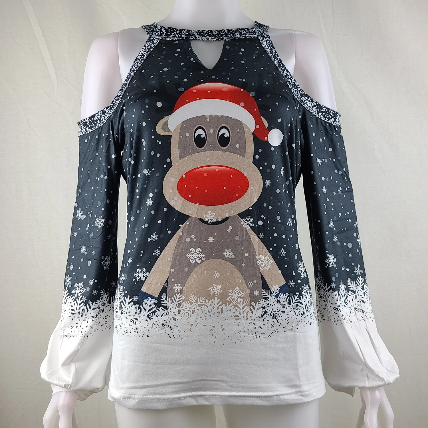 Женская Оригинальная футболка, Женская Сексуальная футболка с открытыми плечами для рождественской вечеринки, Рождественский Костюм
