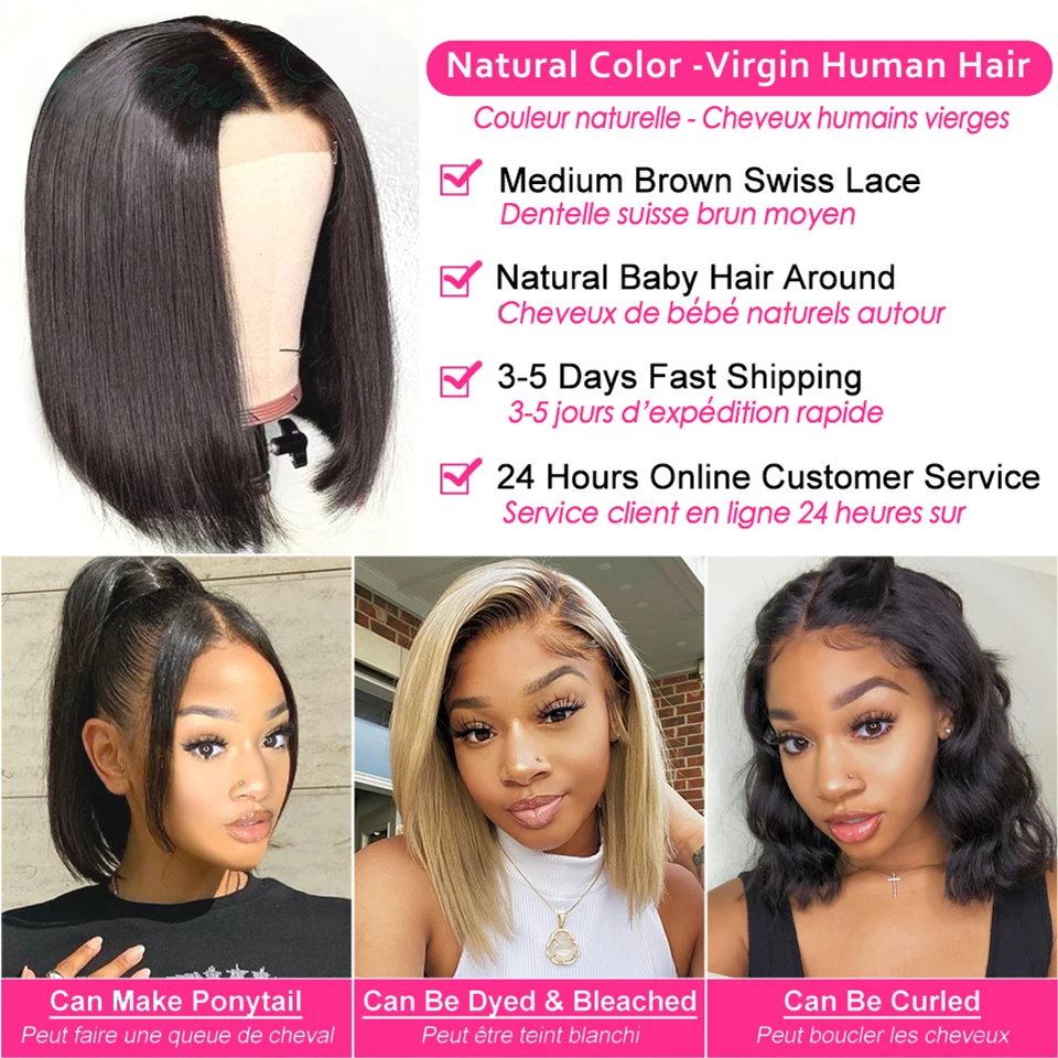 Wigs Style4x4 13x4 Straight Short Bob Wigs