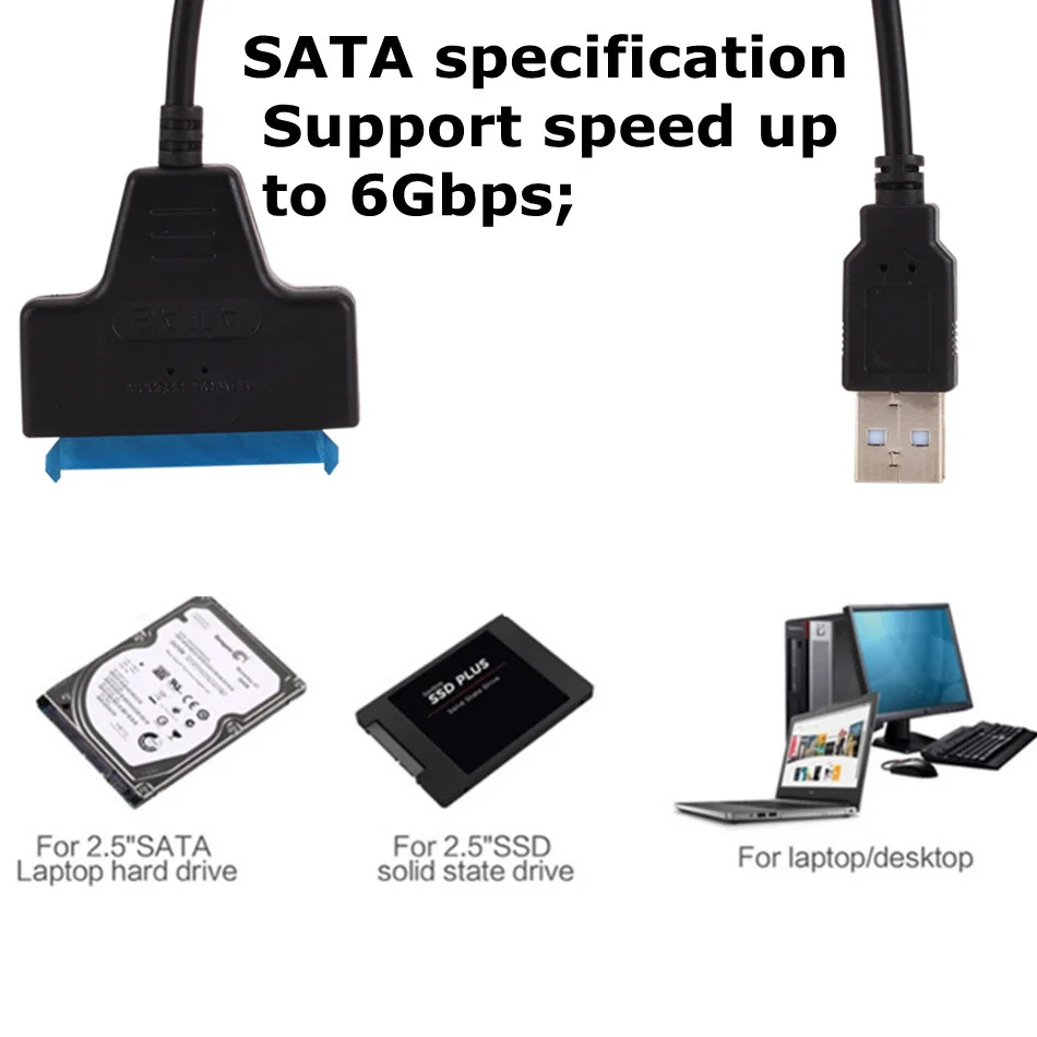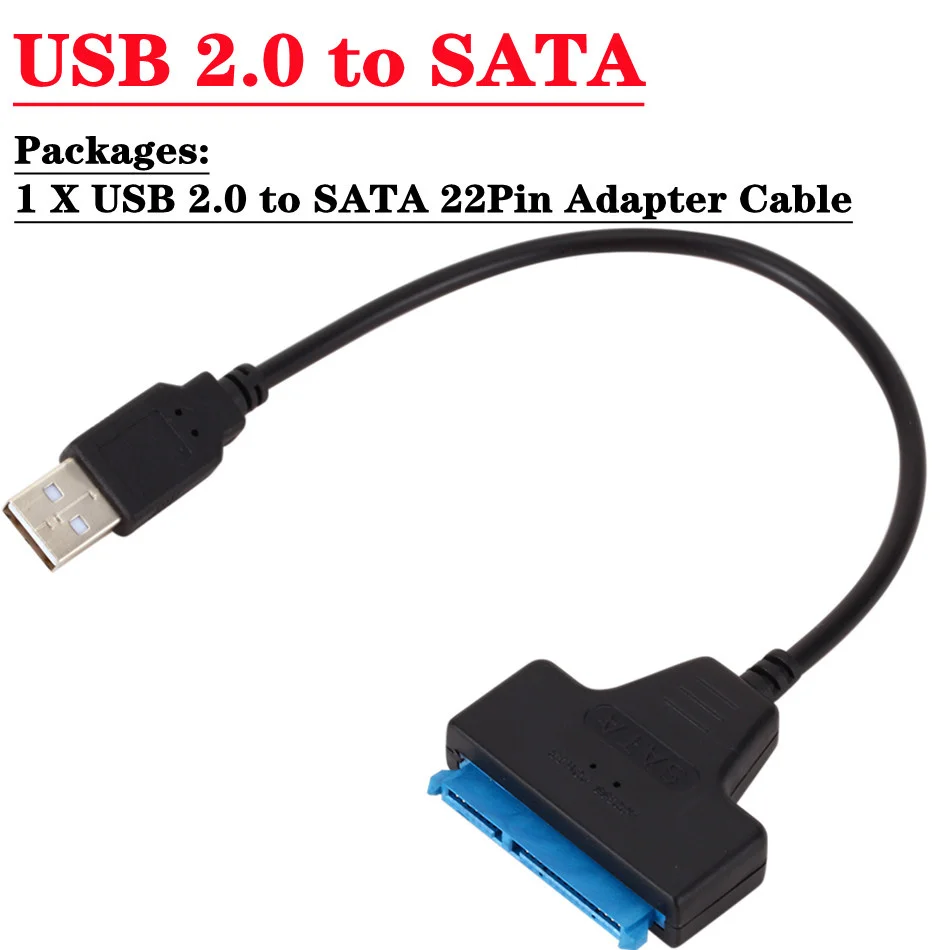 Кабель-переходник USB2.0 на SATA 22pin, кабель-конвертер, линия для подключения HDD SSD, провод для 2,5 дюймовых жестких дисков, для жестких дисков