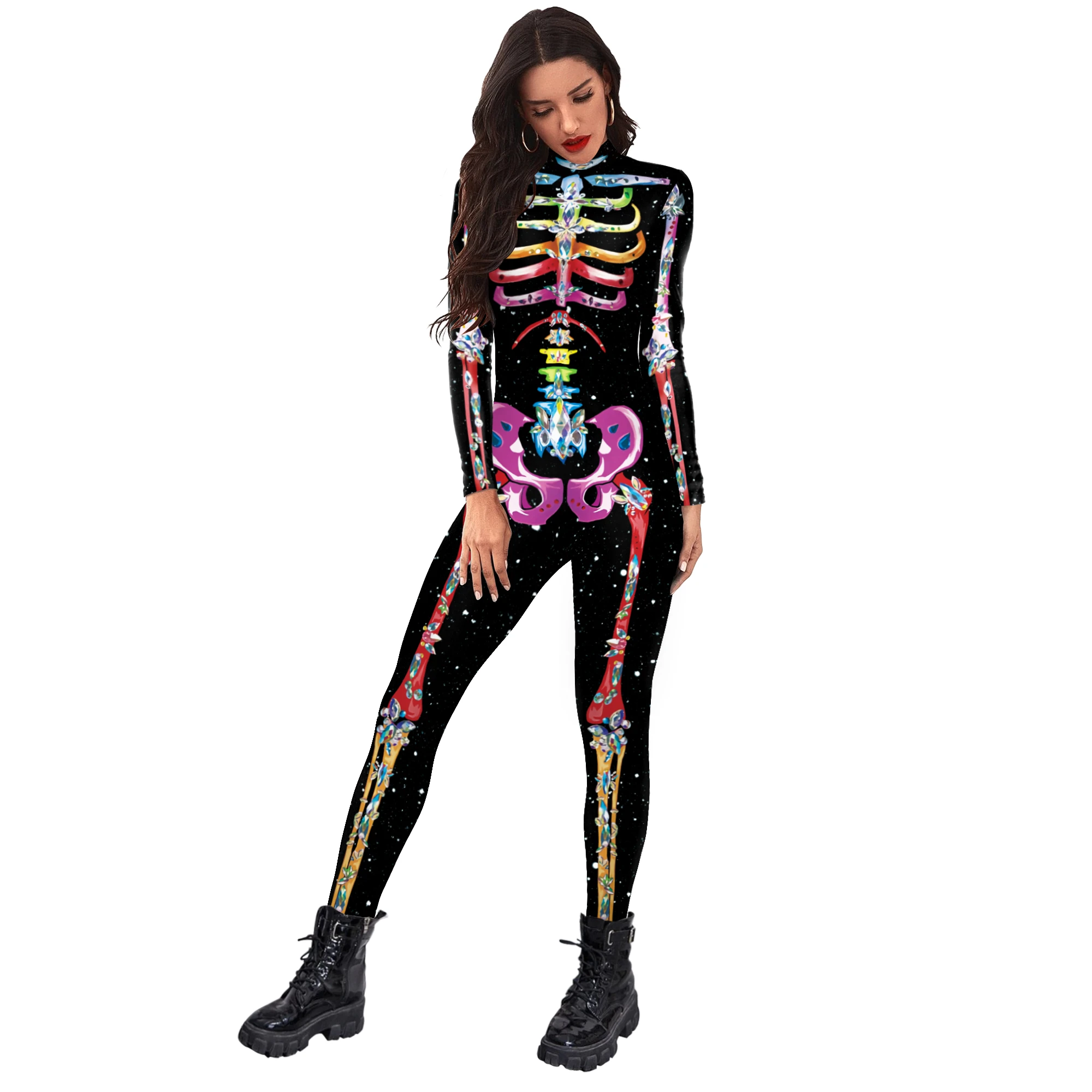 Женский костюм скелета человека на Хэллоуин с цифровой печатью, бод...