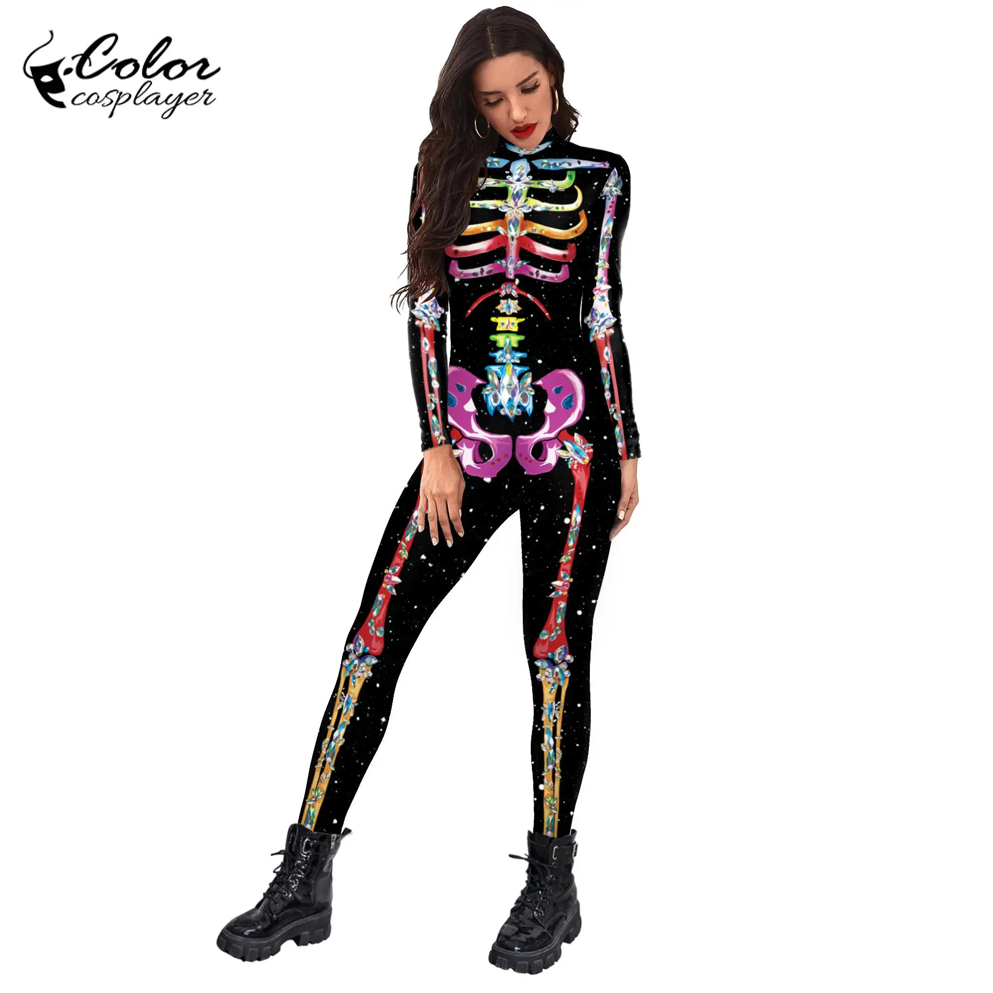 Костюм для косплея на Хэллоуин, боди на молнии с черепом, костюмы д...