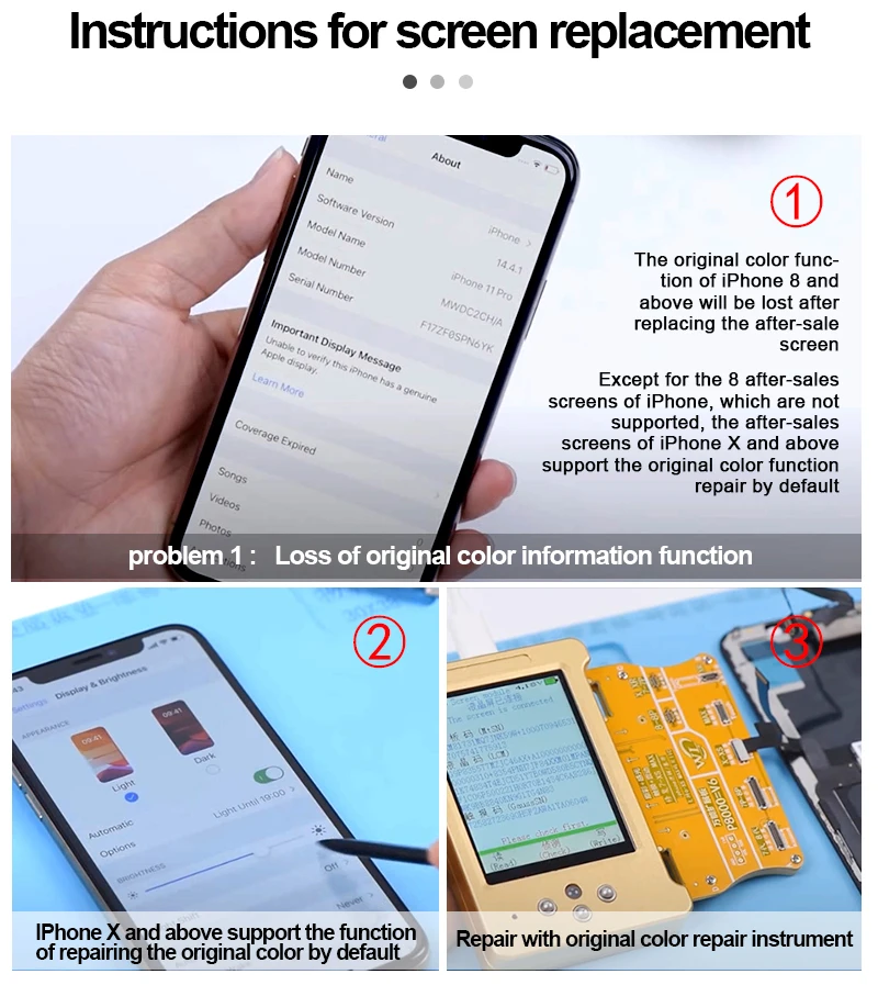 1. Пожалуйста, проверьте экран и проверьте его перед установкой. Если у вас есть какие-либо проблемы, пожалуйста, сначала свяжитесь с нами.