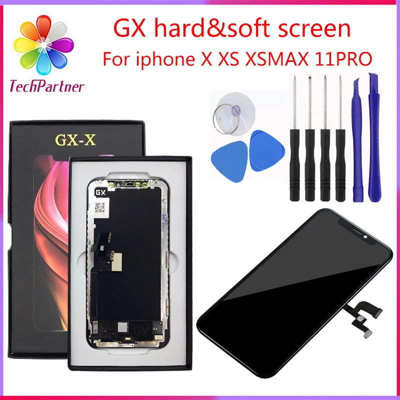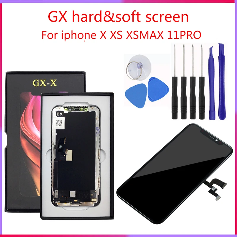 Мягкий дисплей GX OLED для Iphone X XS MAX XR 11 Pro Max, жесткий дисплей с дигитайзером в сборе, замена с бесплатными инструментами