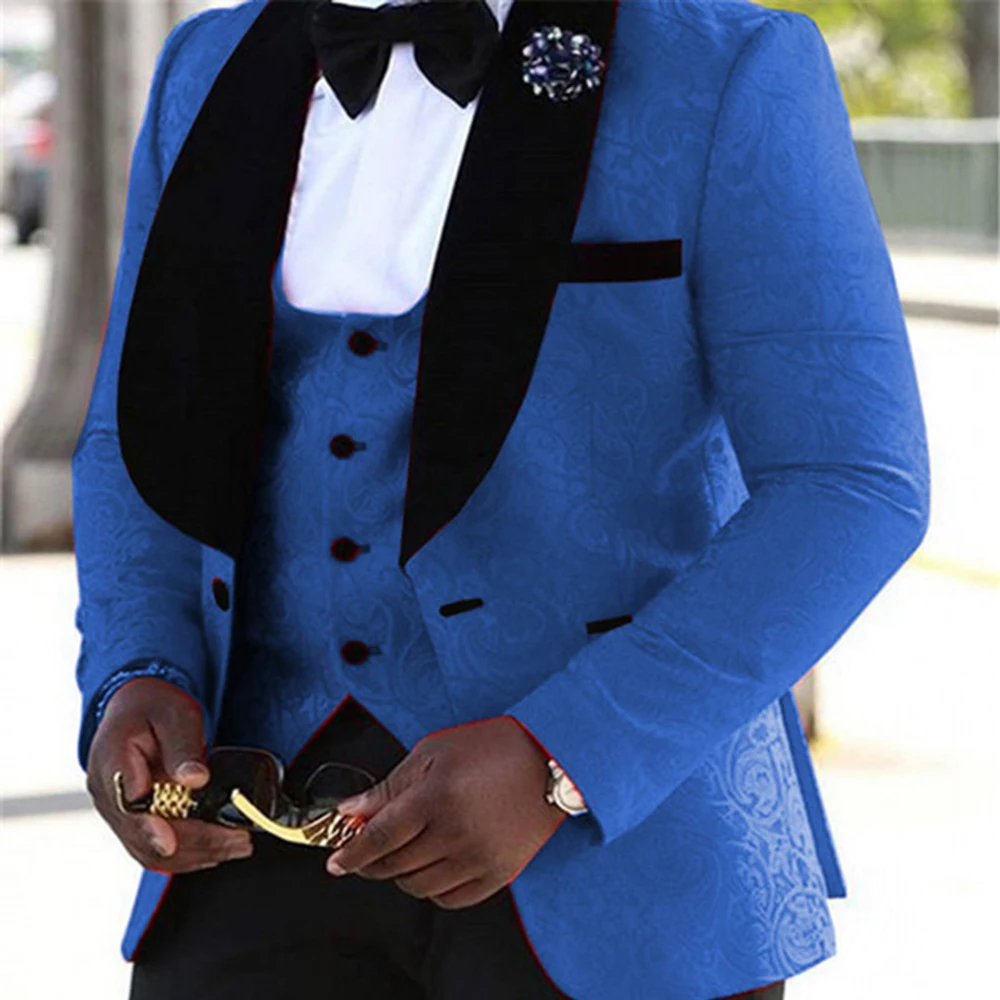 ЖАККАРДОВЫЕ мужские костюмы с бордовым рисунком, свадебный смокинг, 3 предмета, жакет + жилет + брюки, одежда для жениха, искусственное платье