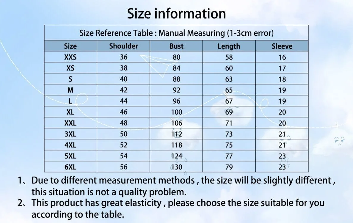 SizeAsian Size XXS-6XL