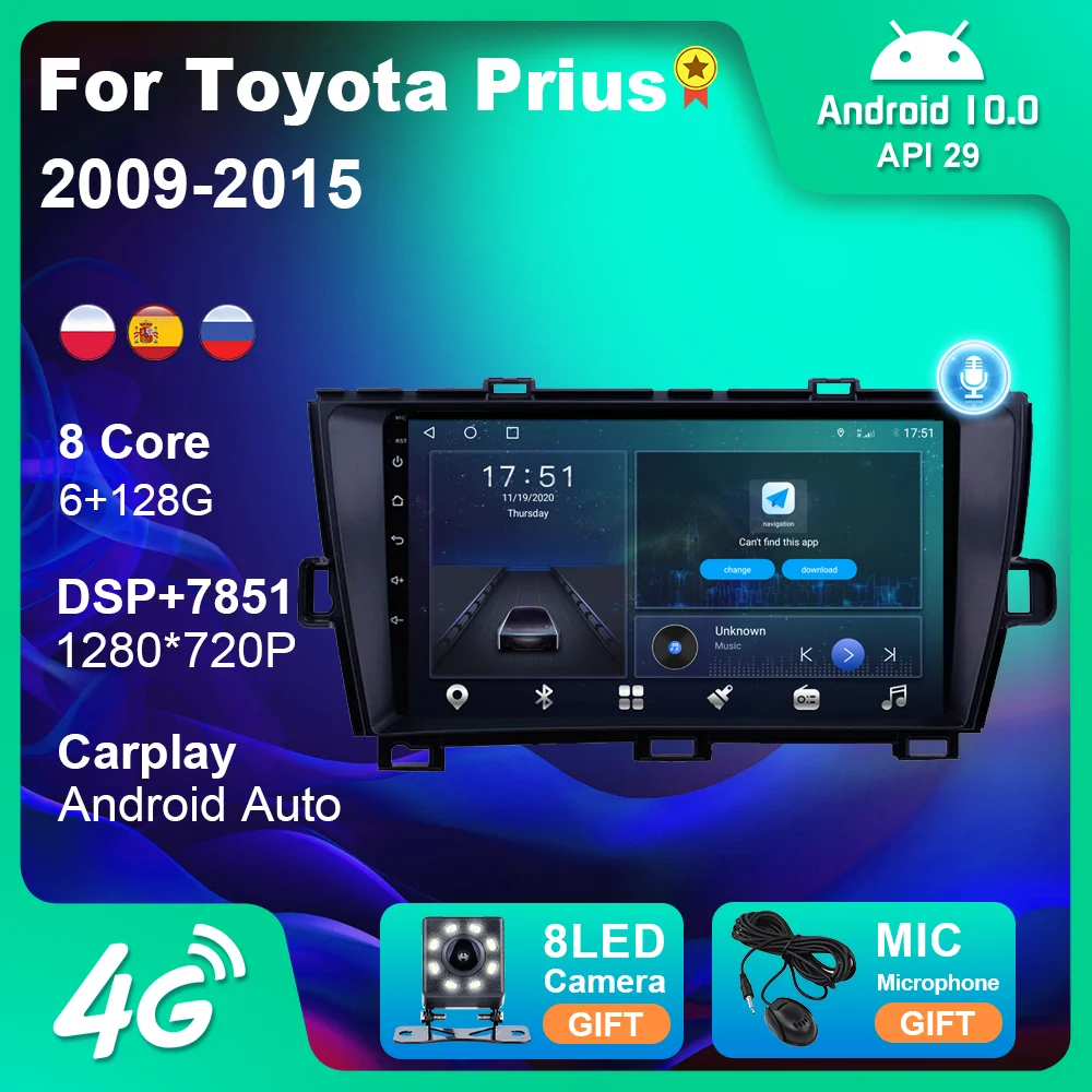 Автомагнитола 2DIN, для Toyota Prius 2009-2015, мультимедиа, видео, DVD-плеер, навигация, GPS, автомагнитола Carplay DSP