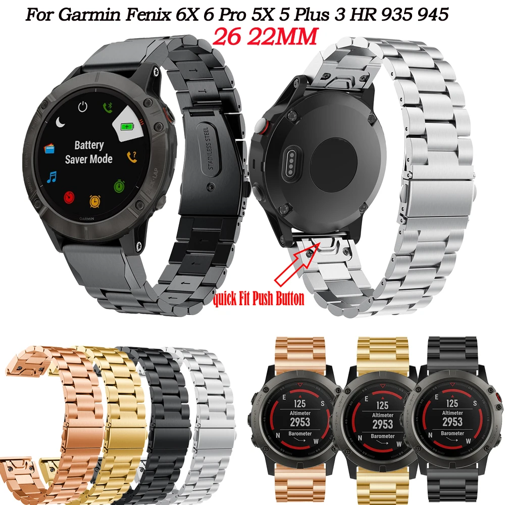 Ремешок металлический для Garmin Fenix 5 5X Plus 6X 6 Pro 3 HR 935 945, быстросъемный браслет из нержавеющей стали для наручных смарт-часов, 2226 мм
