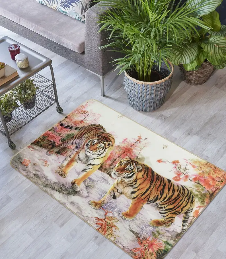3D напольный нескользящий коврик с двумя тиграми, коврик серии KING для комнаты, Круглый качественный напольный водонепроницаемый коврик для кухни и ванной, коврик с принтом