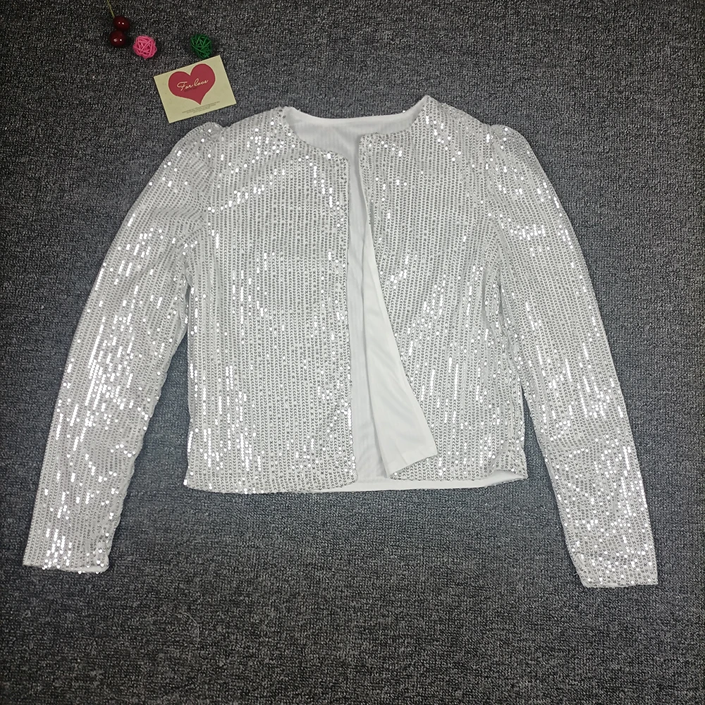 Куртка женская короткая с блестками и длинным рукавом, весна 2021