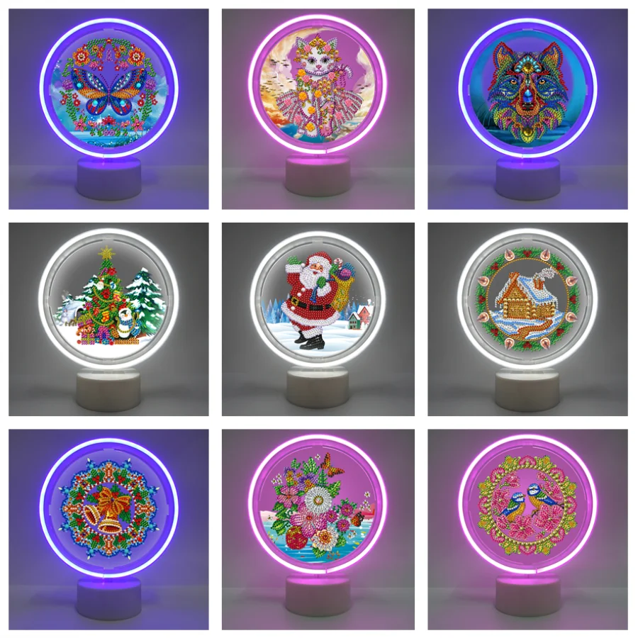 5D DIY алмазная живопись Светодиодная лампа свет цветы животные специальная форма мозаика вышисветильник домашний Декор Рождественский подарок