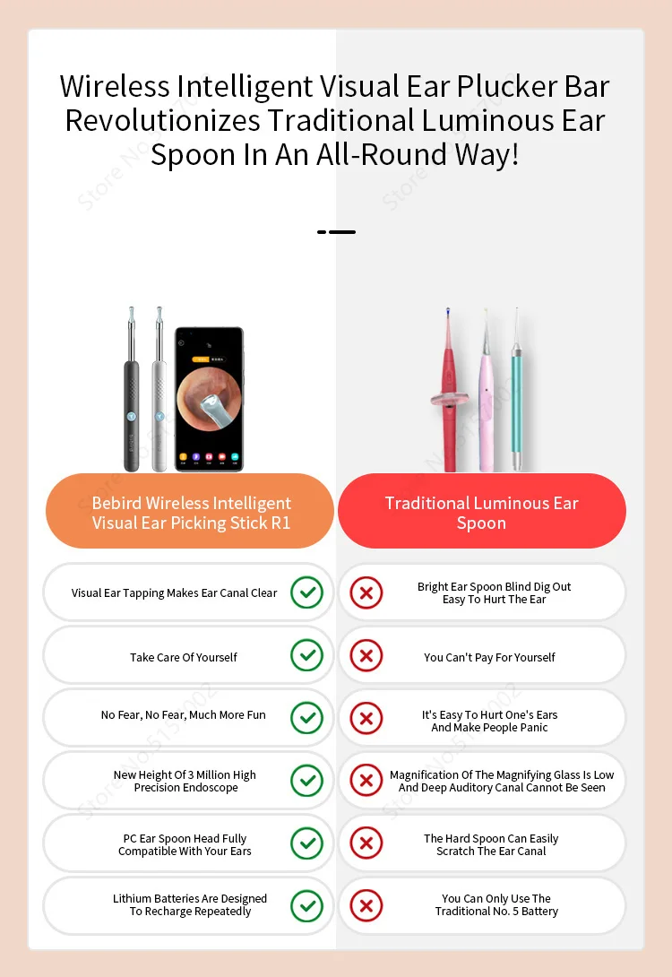 Беспроводная интеллектуальная визуальная Ушная палочка Xiaomi Bebird R1 300 Вт Высокоточный эндоскоп мини-камера отоскоп бороскоп ушной Picker